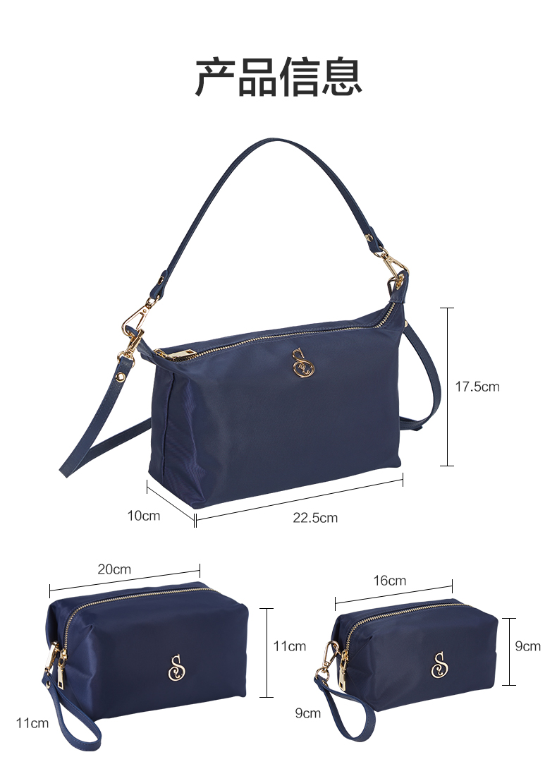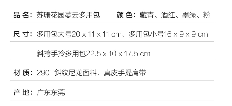 【专柜多样屋】苏珊花园蔓云斜挎手拎多用包收纳包化妆包/黑