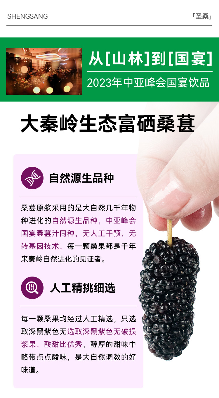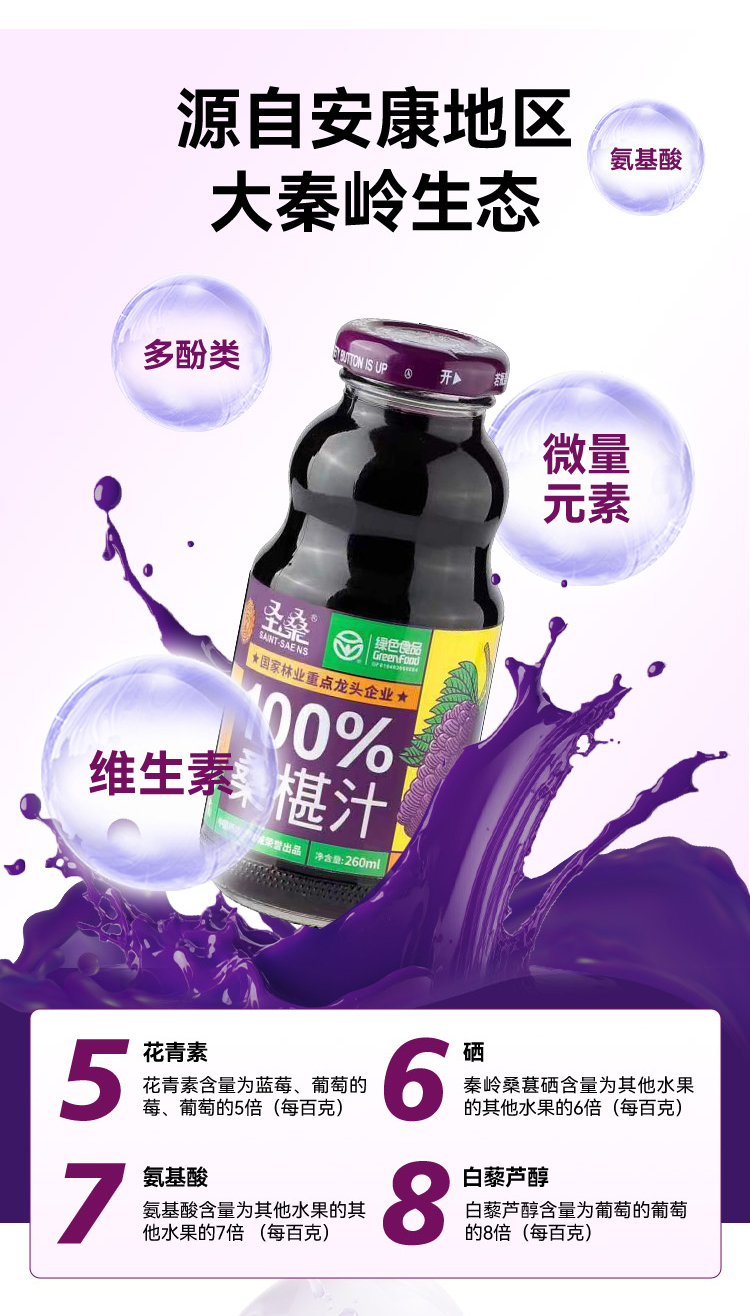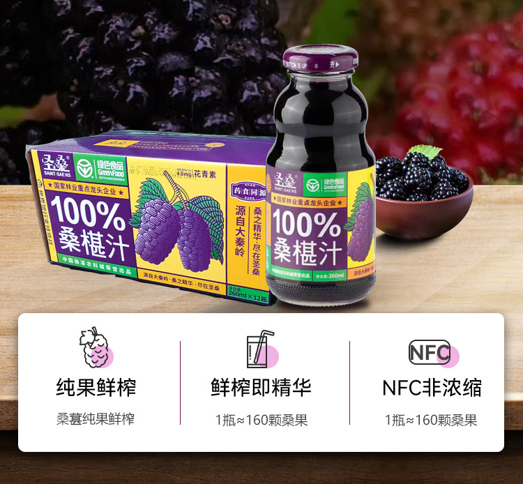 圣桑100%桑椹汁箱装 12瓶*260ml 纯果鲜榨 酸甜可口