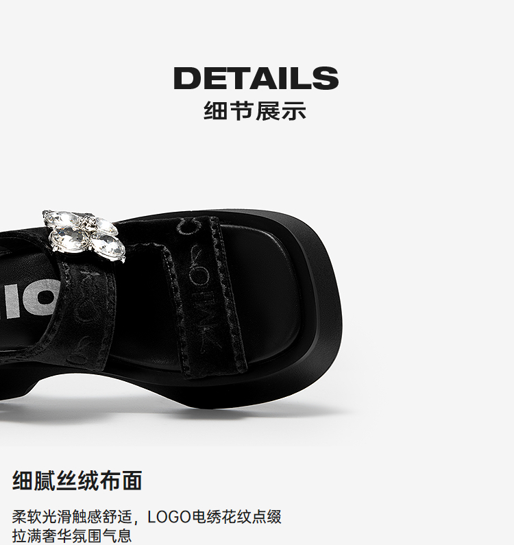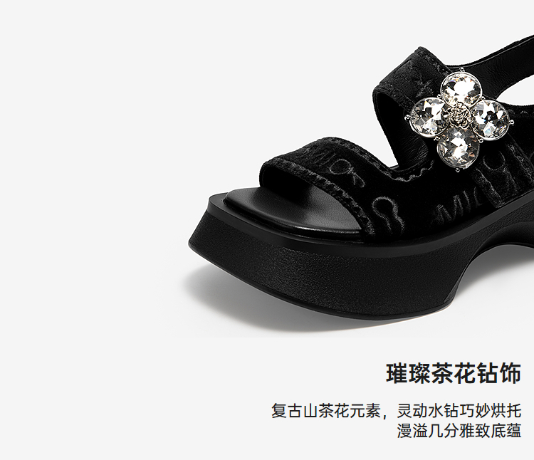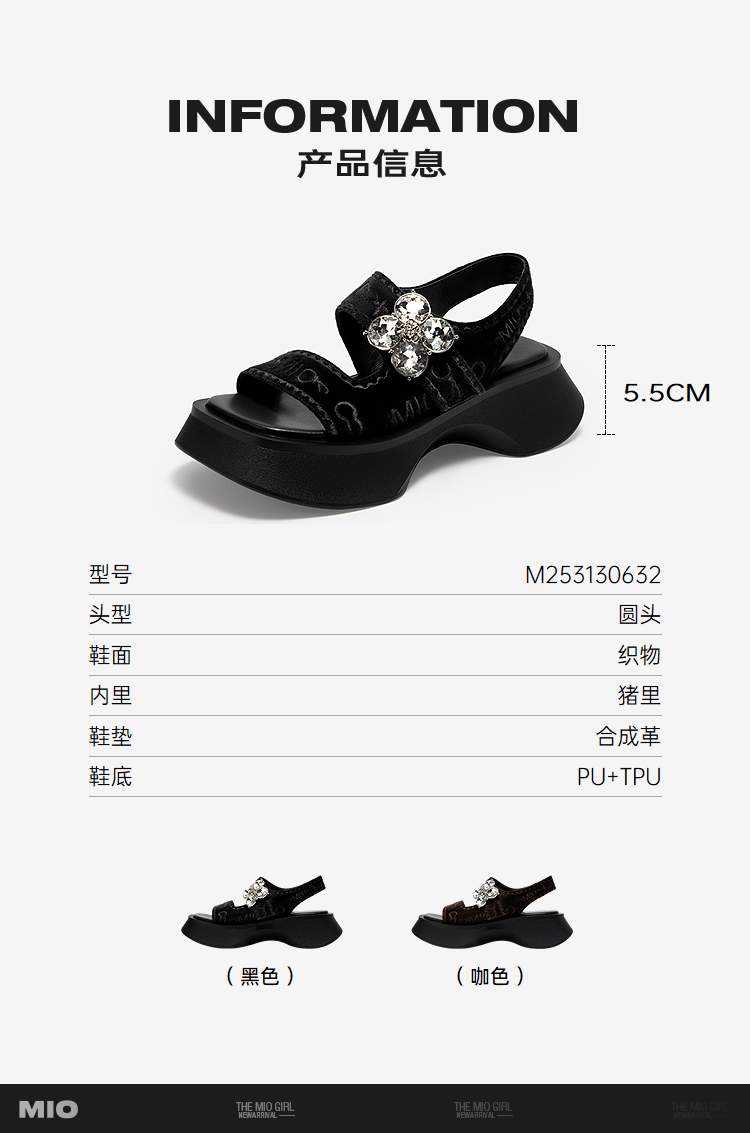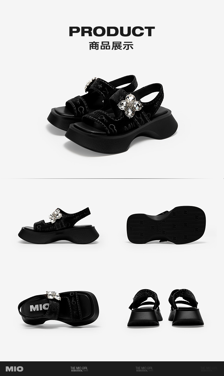 MIO米奥厚底凉鞋女钻饰休闲复古显高外穿时尚一脚蹬M253130632