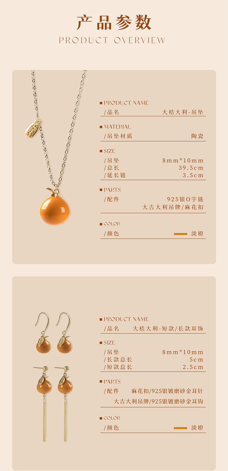 凡华造物大桔大利耳环女小众设计925银耳钉春夏时尚高级流苏耳饰 大桔大利珠针耳钉