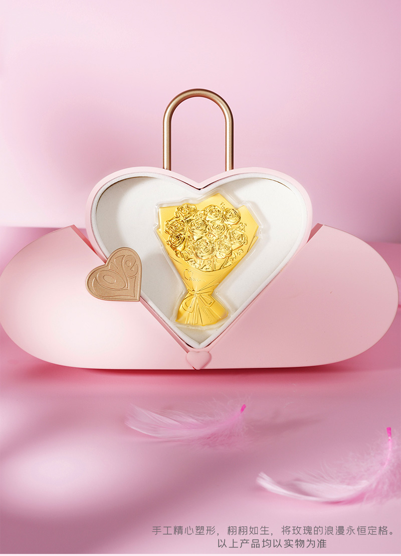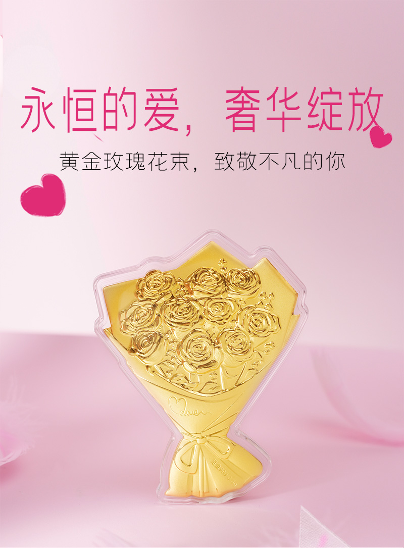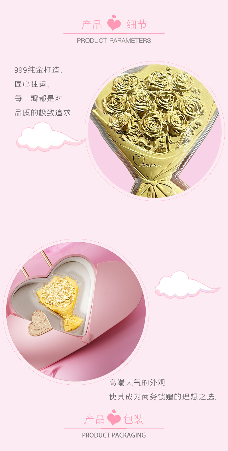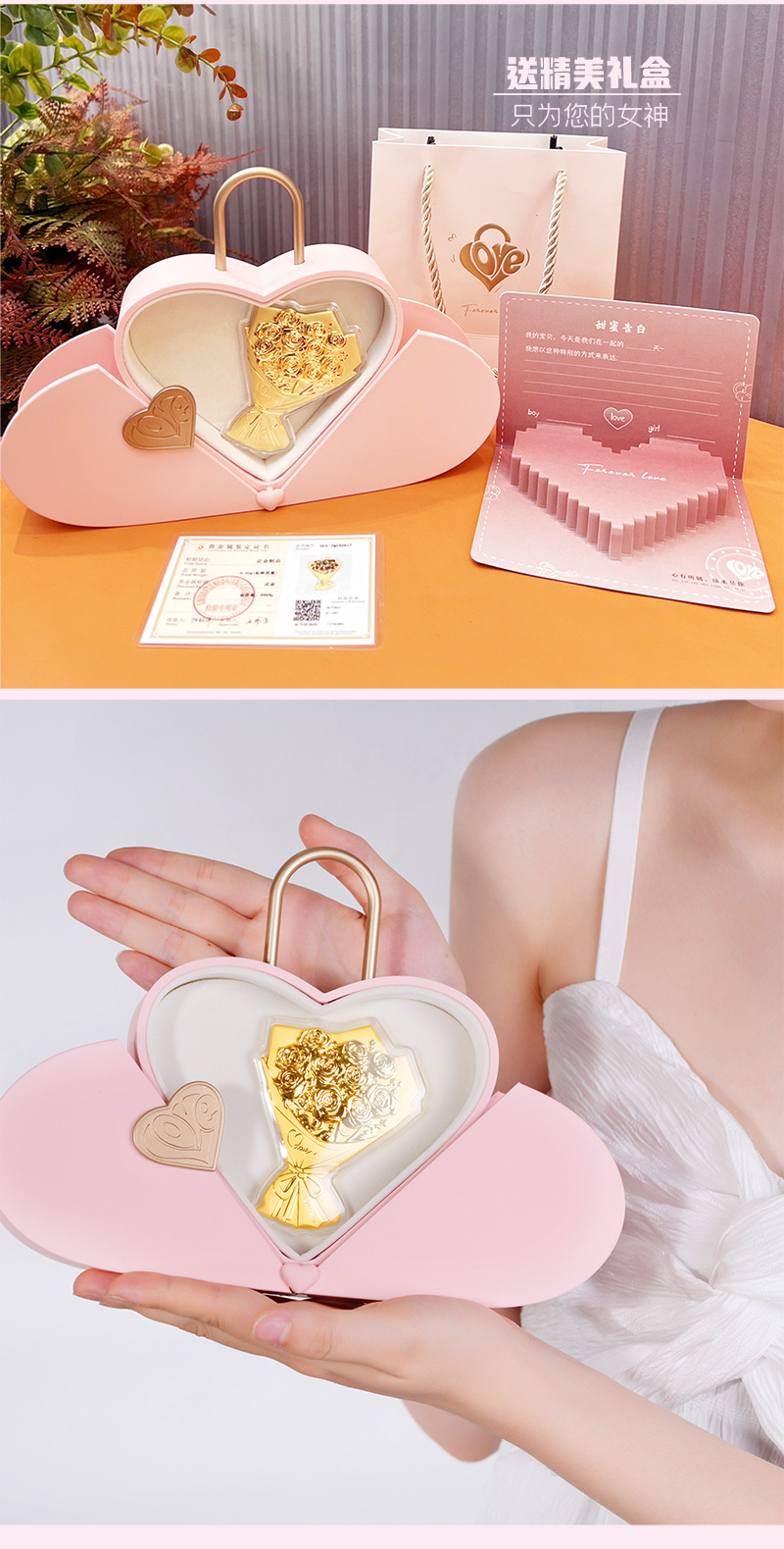 中国工艺黄金足金玫瑰花0.3g永生花送长辈送爱人