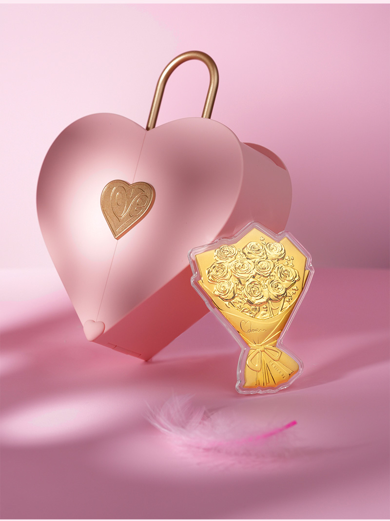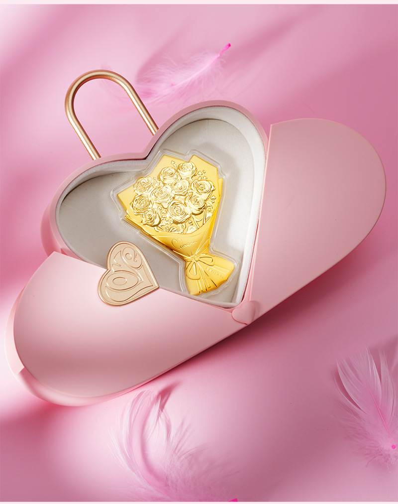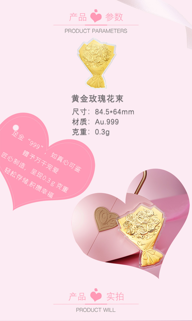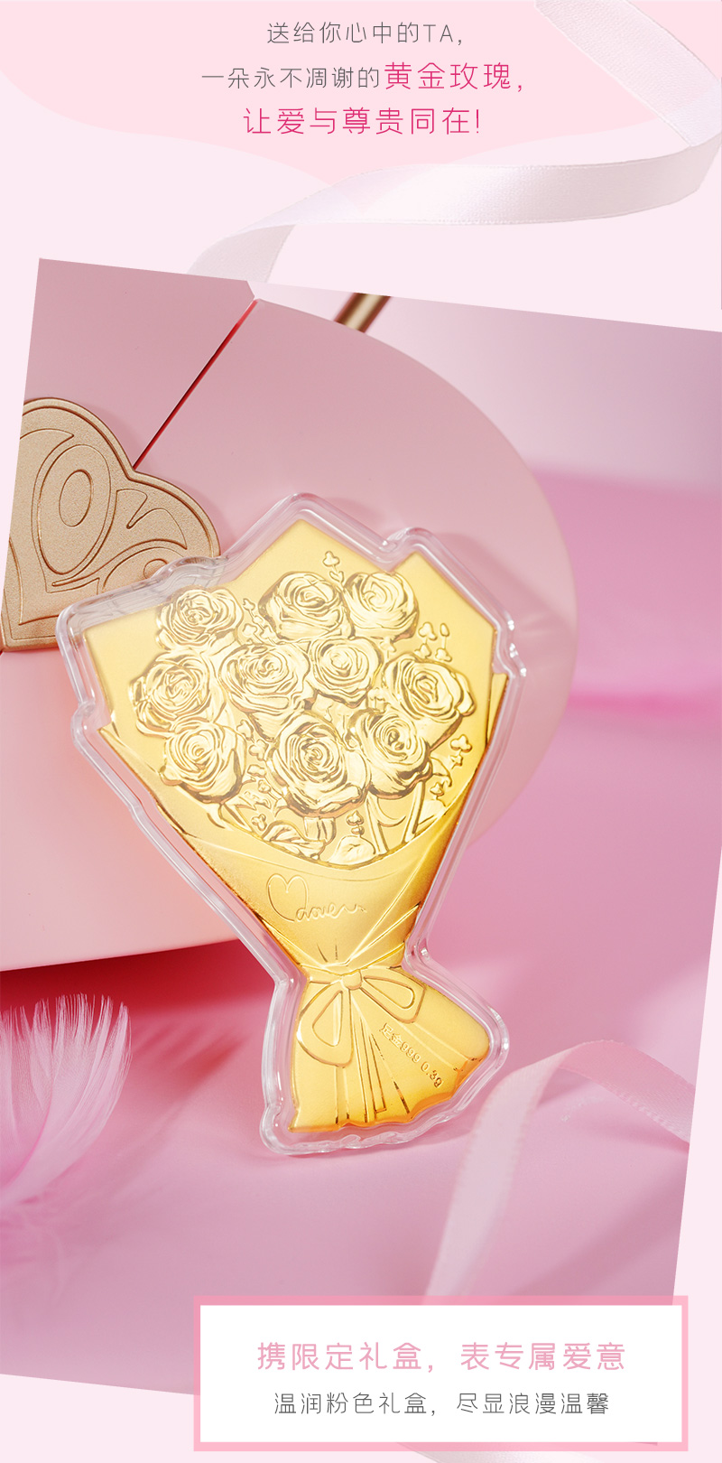 中国工艺黄金足金玫瑰花0.3g永生花送长辈送爱人