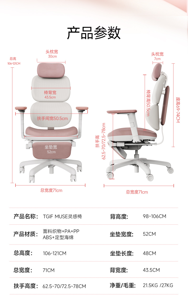 TGIF拓际MUSE女王椅女生人体工学电脑椅按摩护腰久坐办公电竞椅