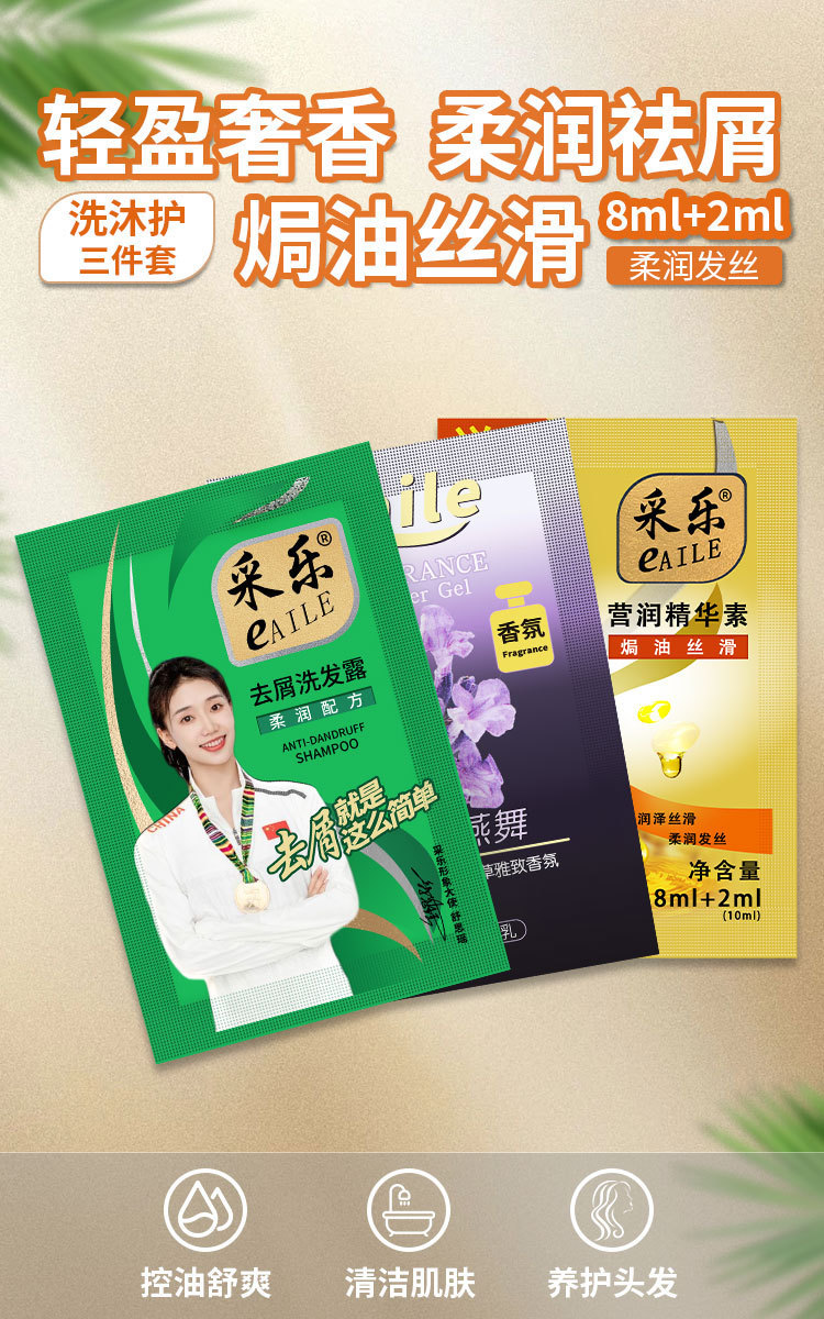采乐袋装一次性洗发水沐浴露套装10ml宾馆酒店专用洗浴旅行便携装