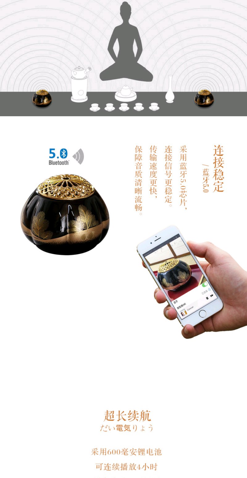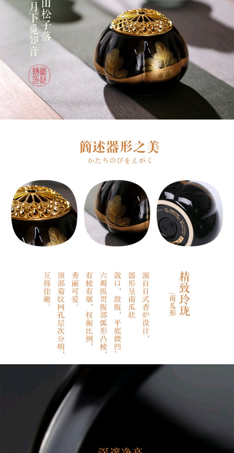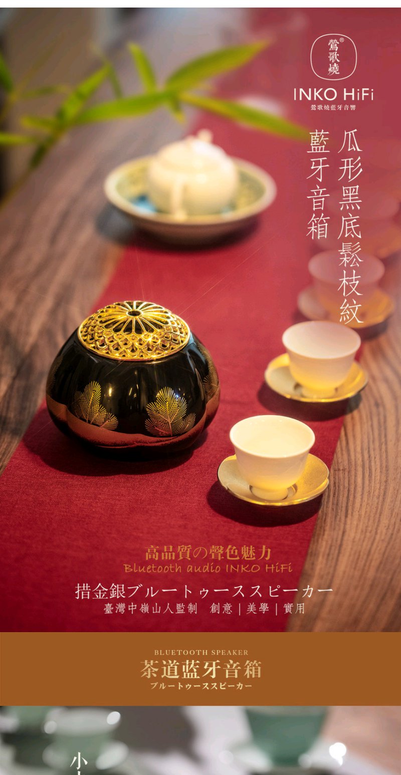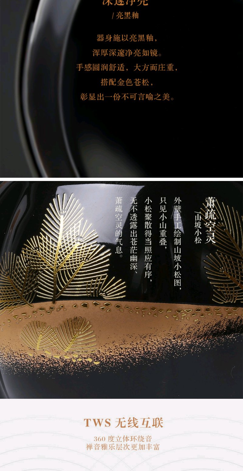 莺歌烧 瓜形黑底松枝纹蓝牙音箱 新品禅意HIFI蓝牙禅音音响茶台高品质音箱漆面瓜菱茶道摆件