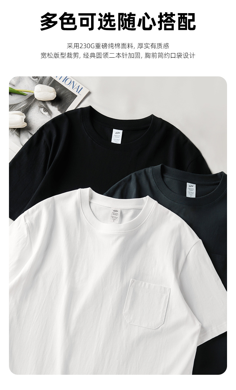 「6色可选!230g精梳棉」短袖男纯色宽松嘻哈T恤女设计感口袋日系潮牌情侣上衣T恤