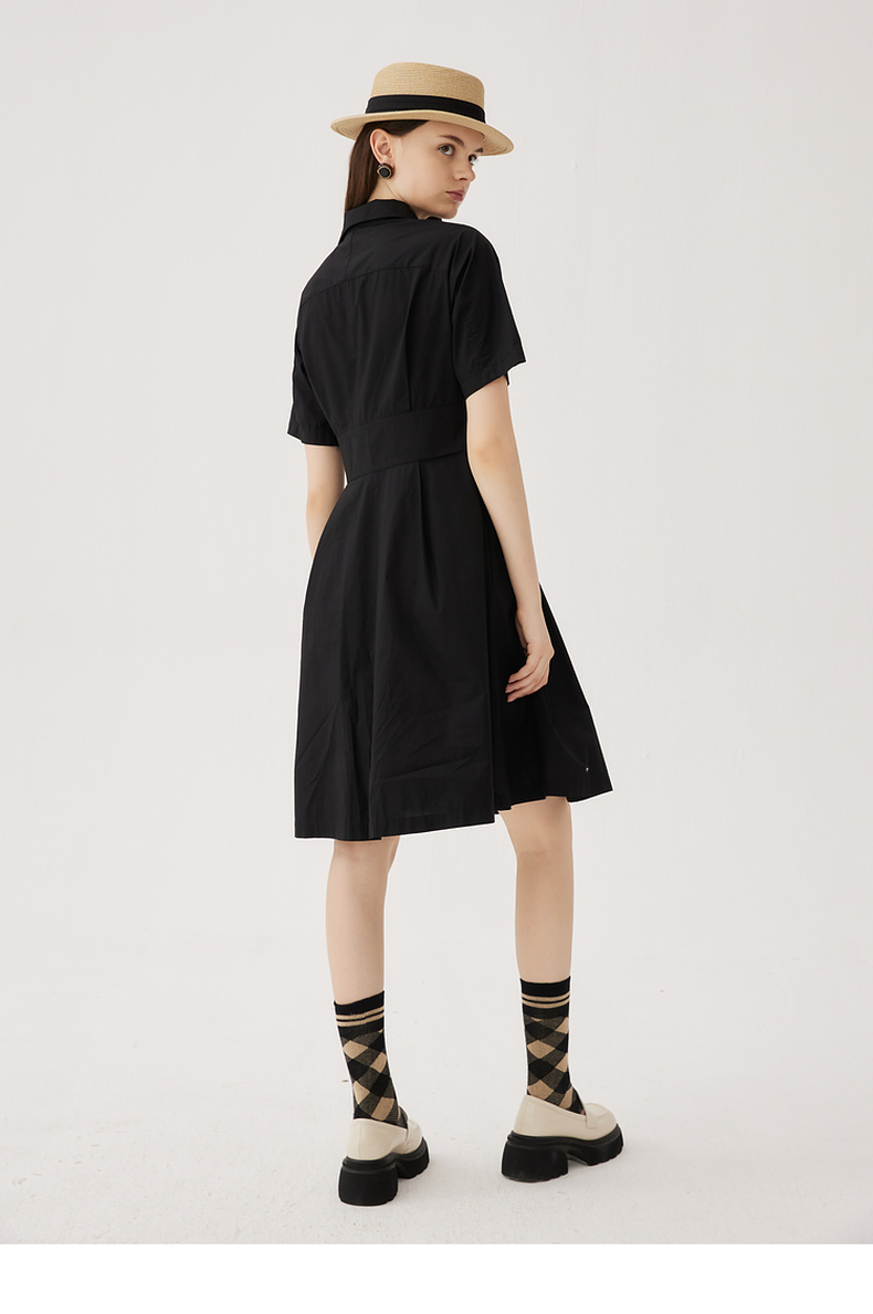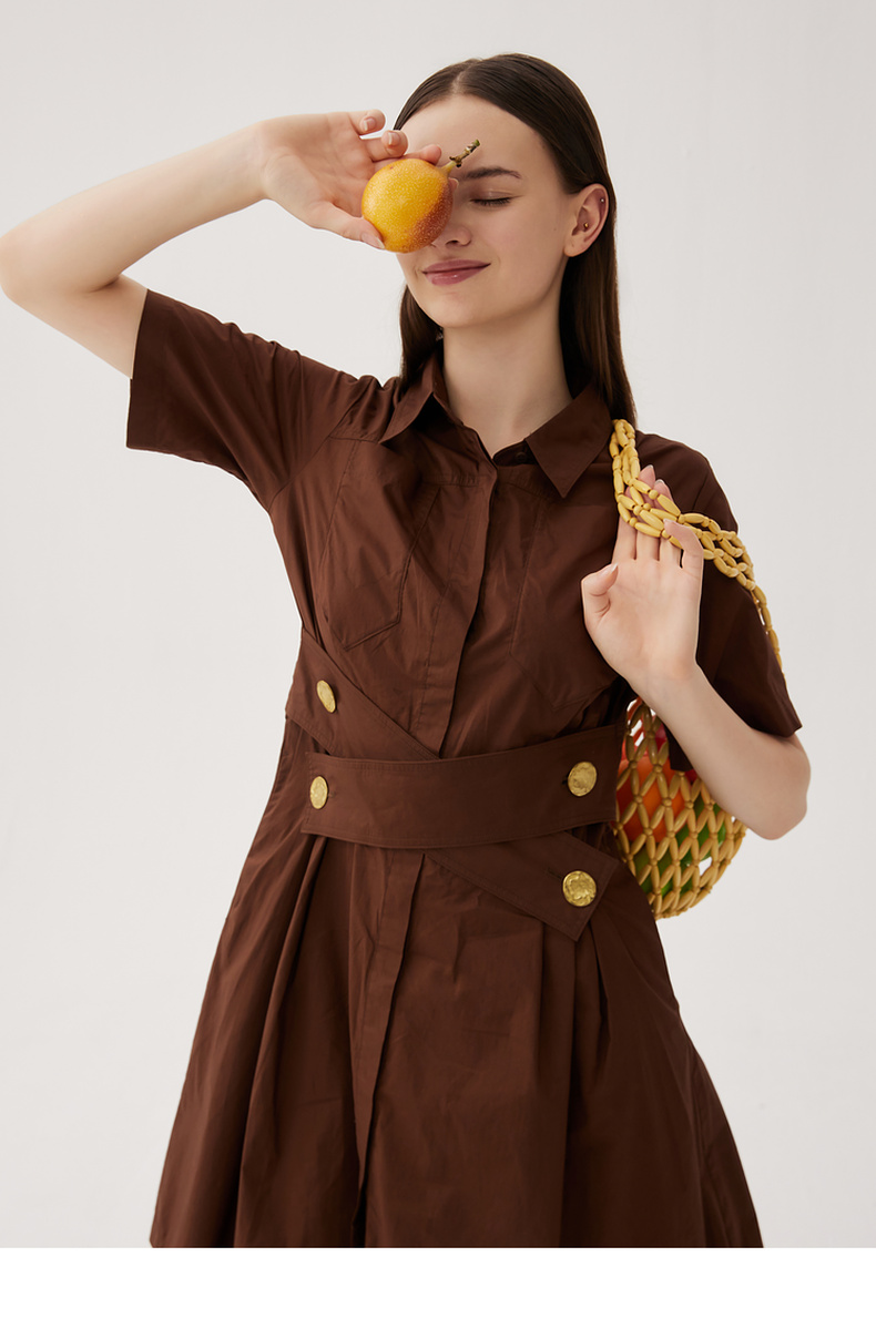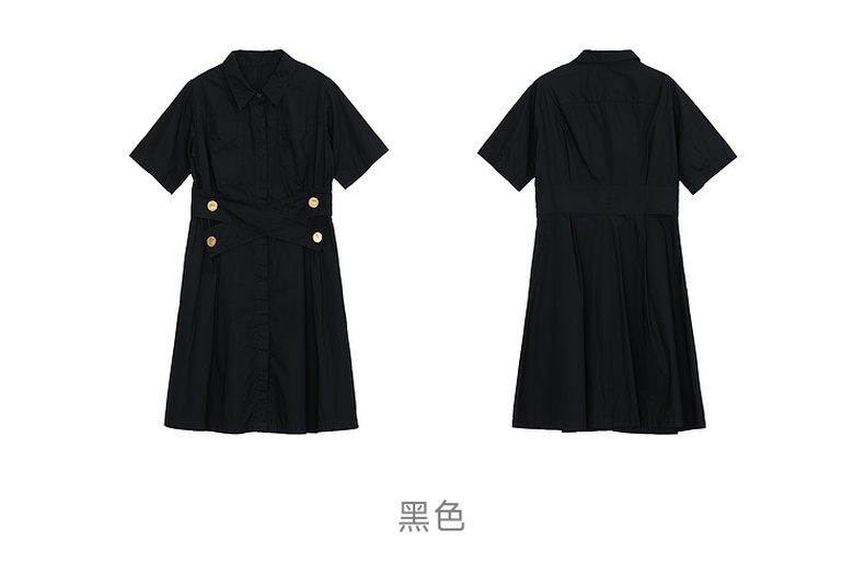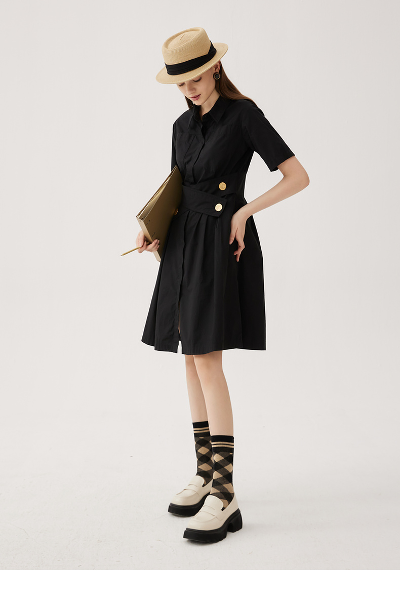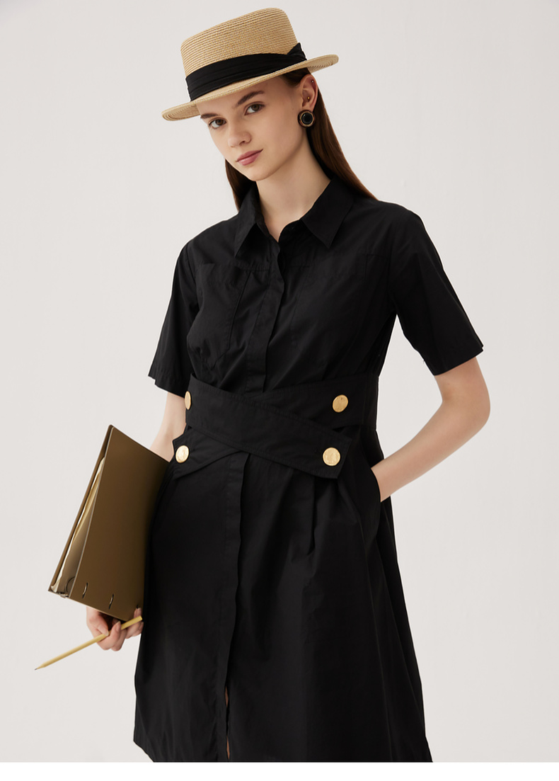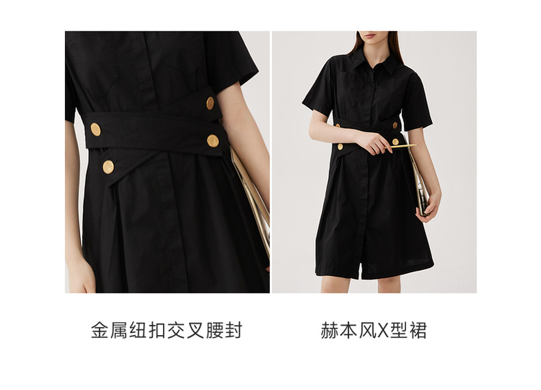 谜底衬衫式连衣裙短袖女2024夏季款通勤风设计感中长裙247ML5014