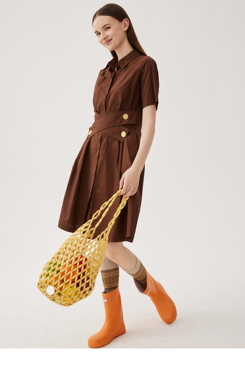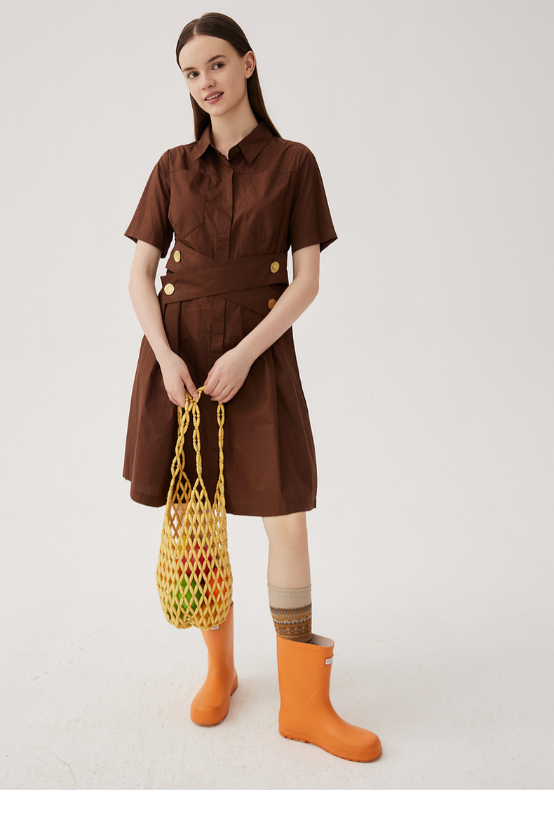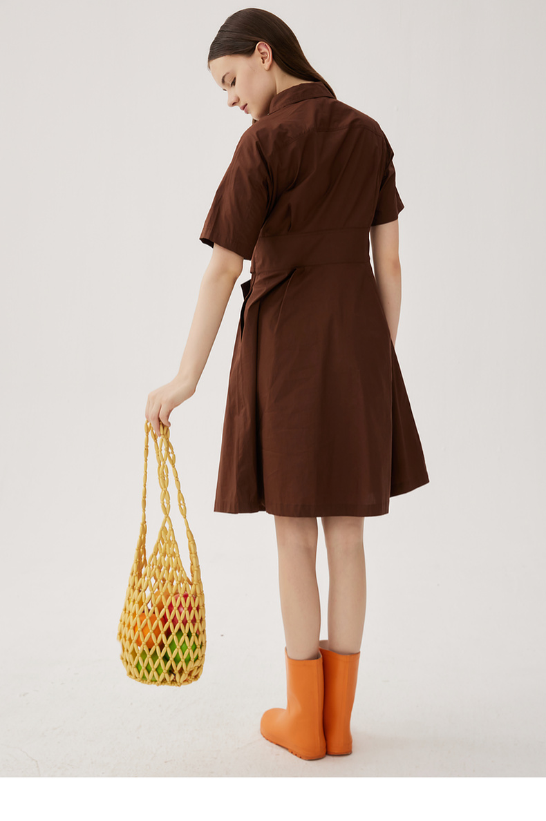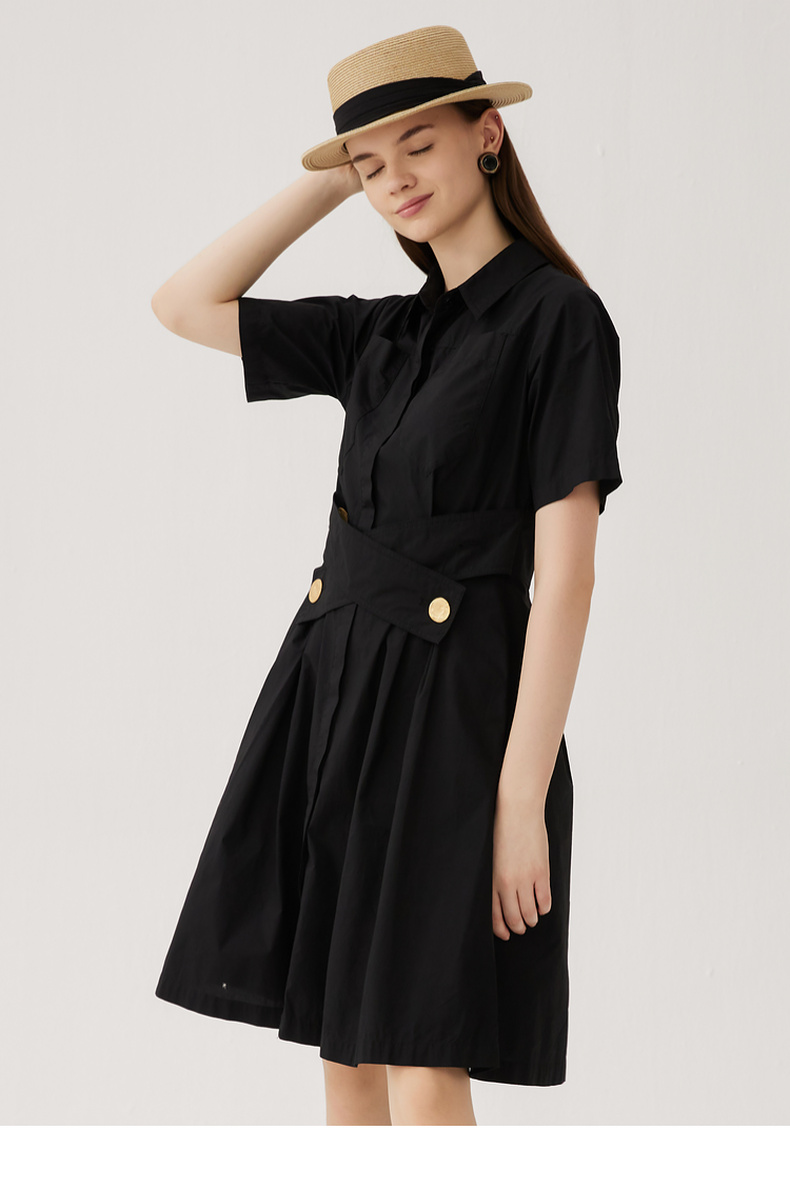 谜底衬衫式连衣裙短袖女2024夏季款通勤风设计感中长裙247ML5014