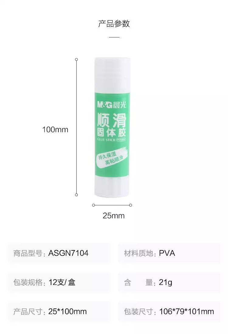 晨光ASGN7104 高粘顺滑固体胶棒 21g 大支白色壳7104办公棒棒胶