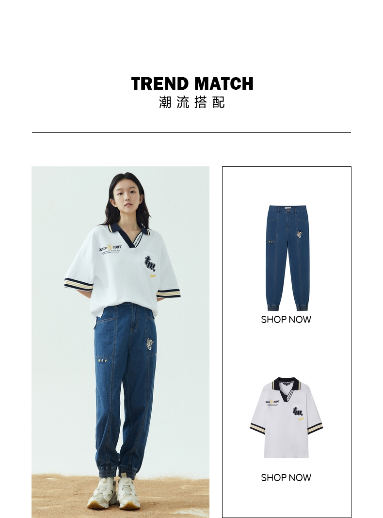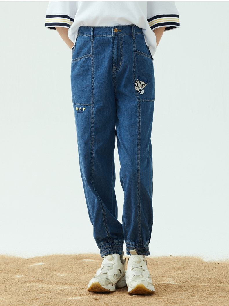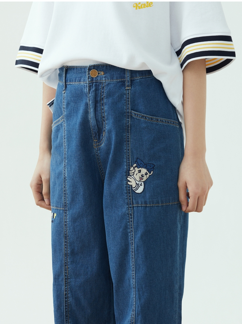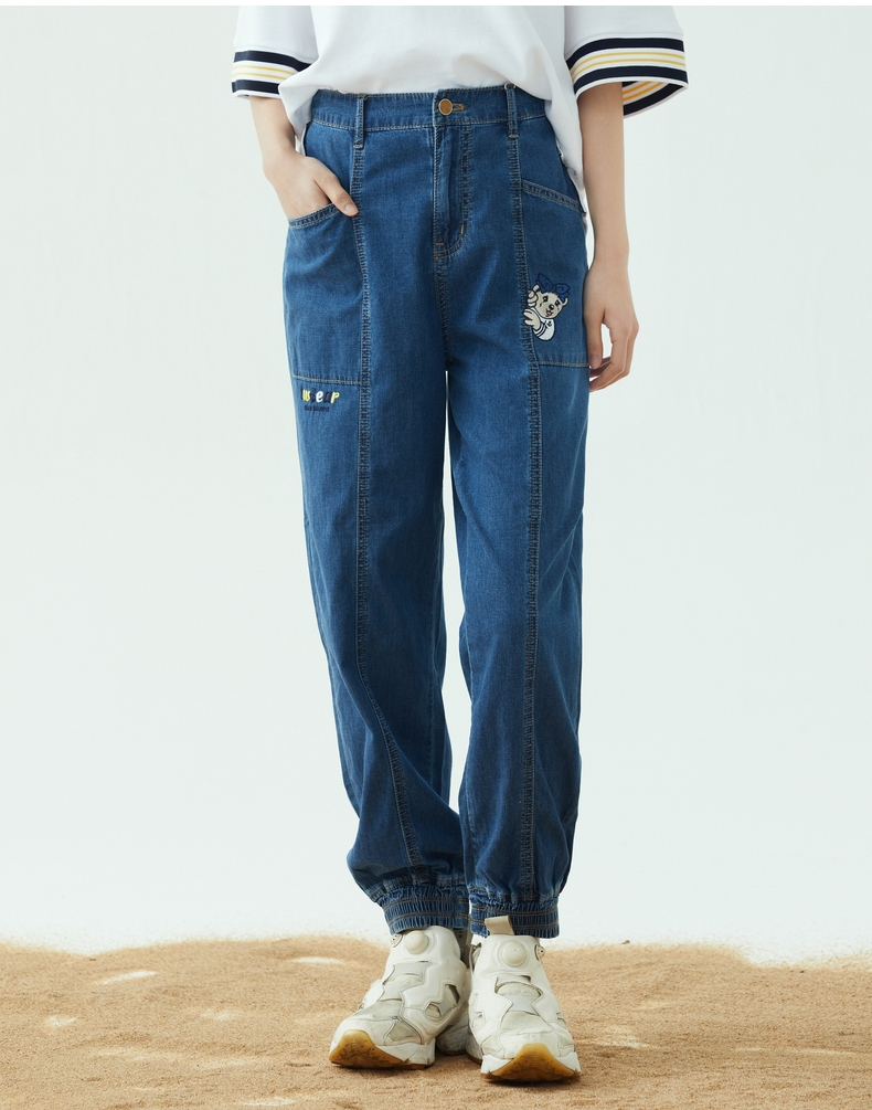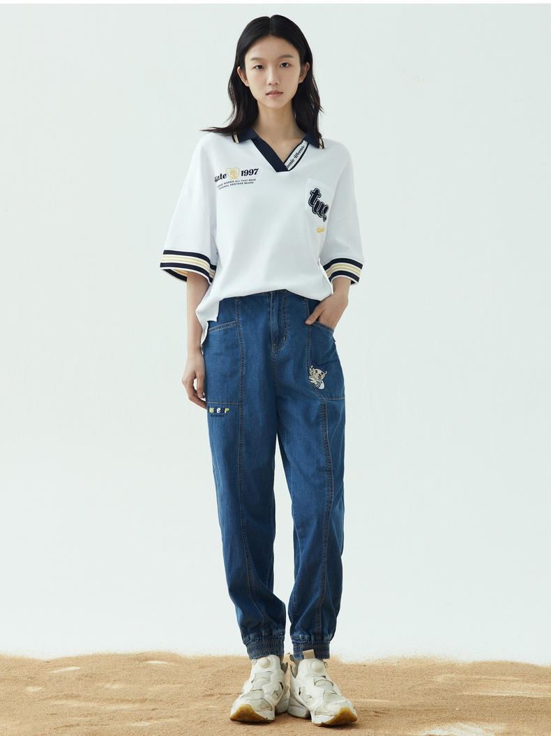 TeenieWeenie小熊2022夏季高腰显瘦束脚裤宽松牛仔裤TTTJ222401P