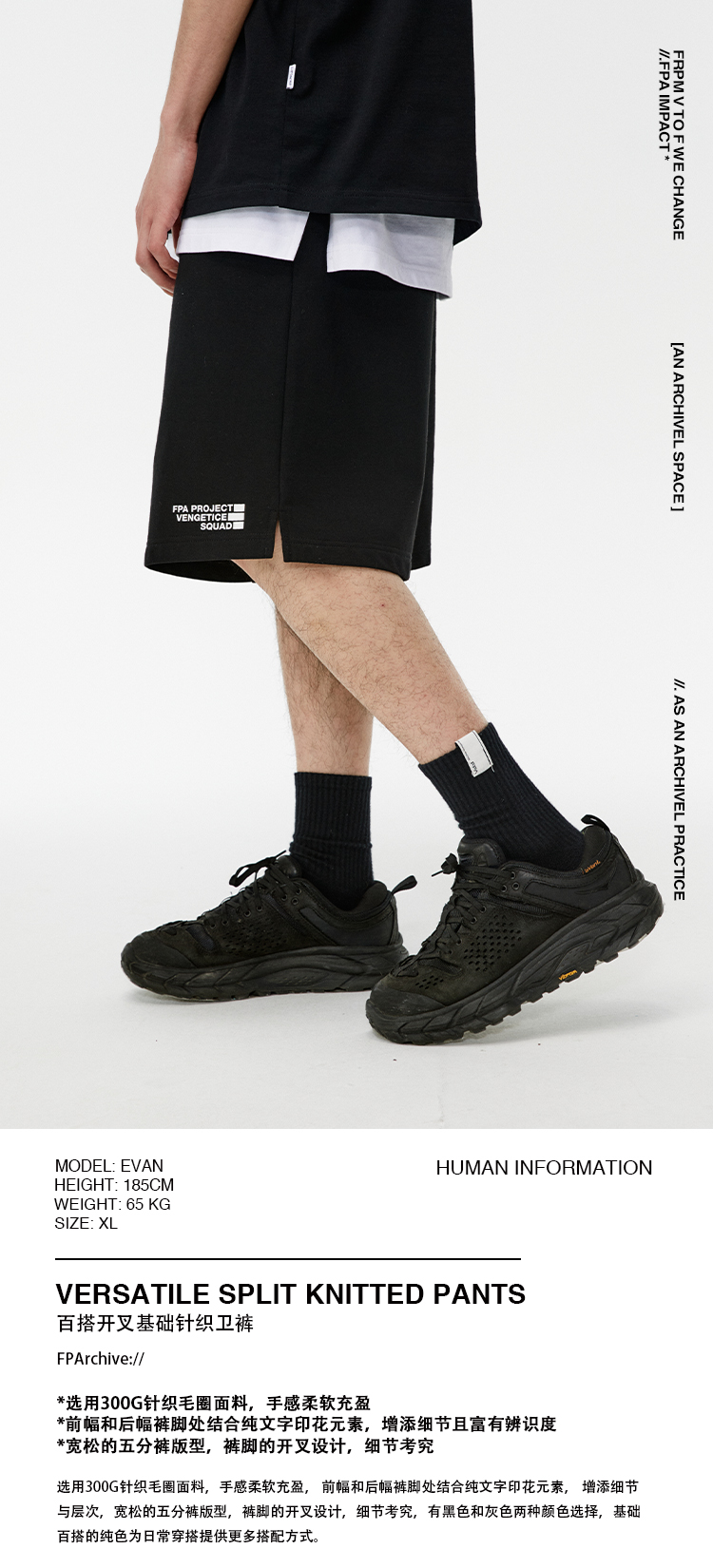 FPA(VENGETICE) 基础开衩针织短裤 国潮牌嘻哈宽松街头百搭五分裤