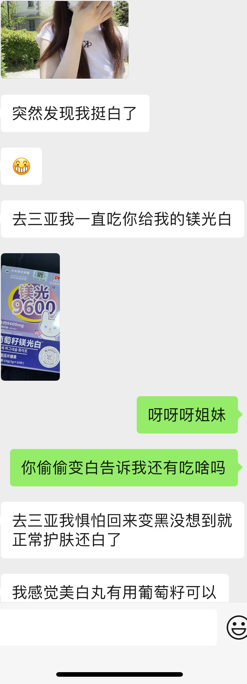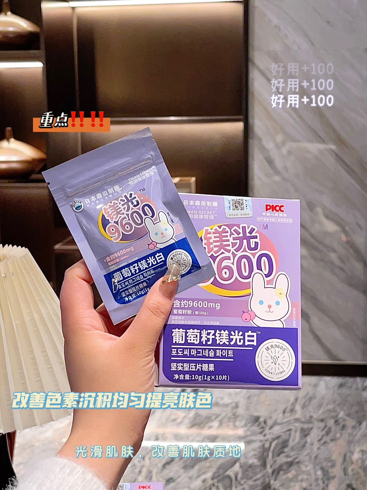 日本森田制药葡萄籽镁光里面有高纯度的原花青素,可以抗氧化,还有啥别的我也记不住了。抗氧化是个任重而道远的过程,对我来说最大的变化就是气色好了很多,加上平时我也泡黑枸杞藏红花,最主要葡萄籽可以长期吃,姨妈不会出走。提亮肤色抗初老up。关键还是坚持,每天一粒也省心,对身体只能是有好处没坏处。我自己的感觉就是熬完大夜皮肤状态会比之前好一些了。