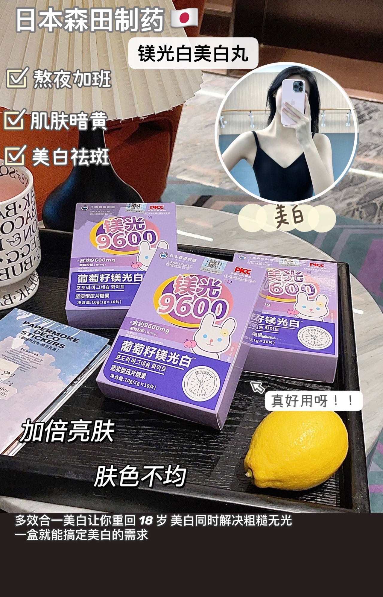 【品名】日本森田制药葡萄籽镁光白胶原蛋白肽雪肌美白丸10g/盒