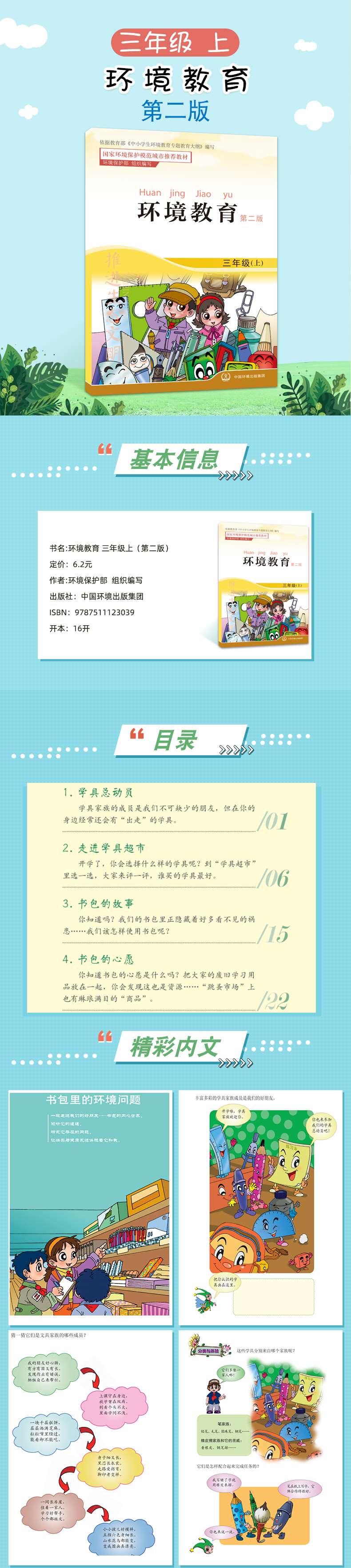 环境教育 第二版 三年级上 环保模范城市教材 环境科普读物 环境保护 中国环境出版社 9787511123039