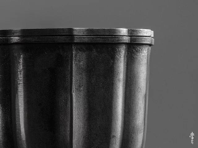单只建水尺寸:81mm 81mm 77mm器型来源:八边葵口造型,中正挺拔,花瓣棱线铿锵有力,钱纹水口,中心内凹水从财入,纯锡质地,使用愈久,愈加朴拙。