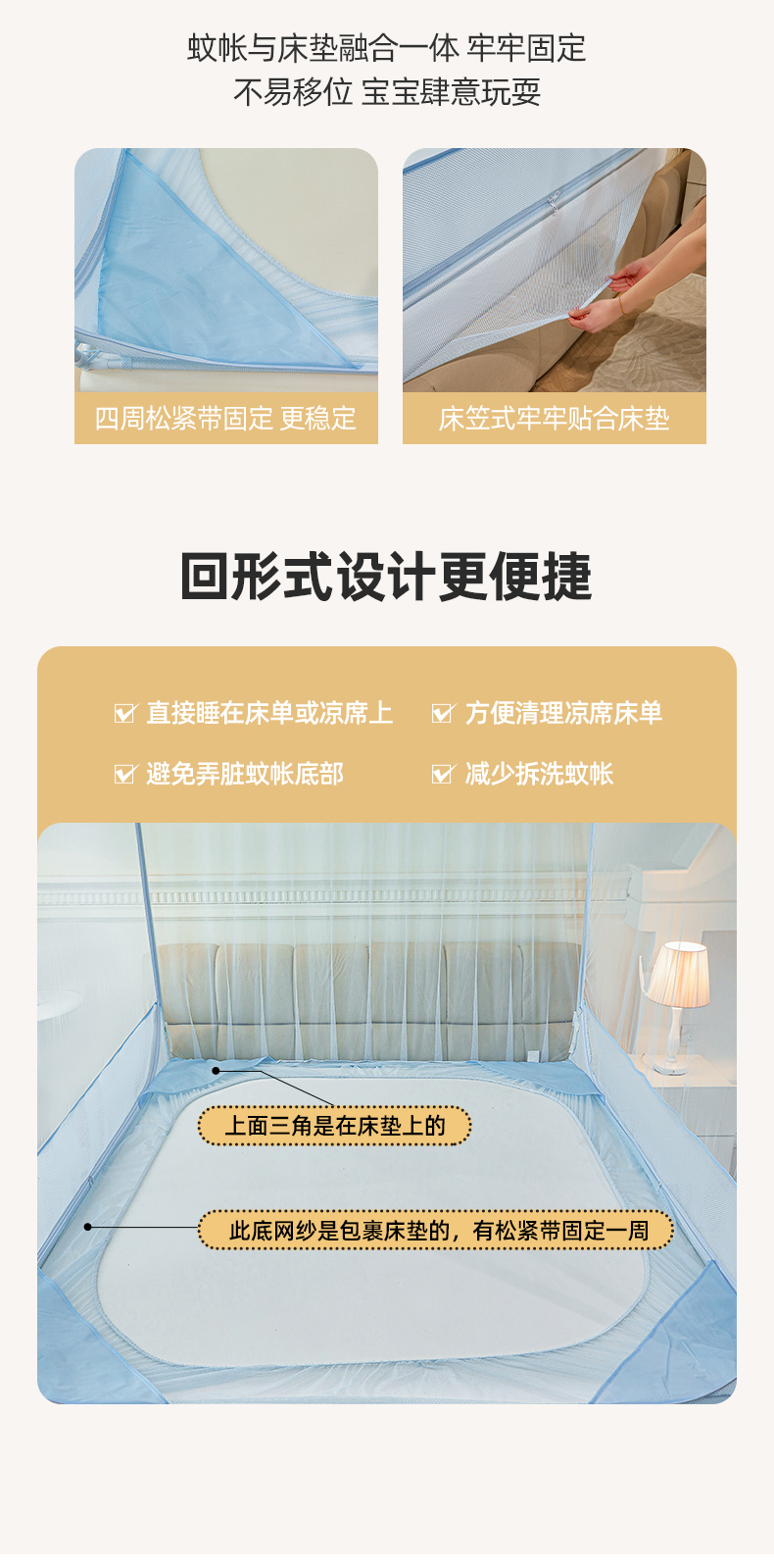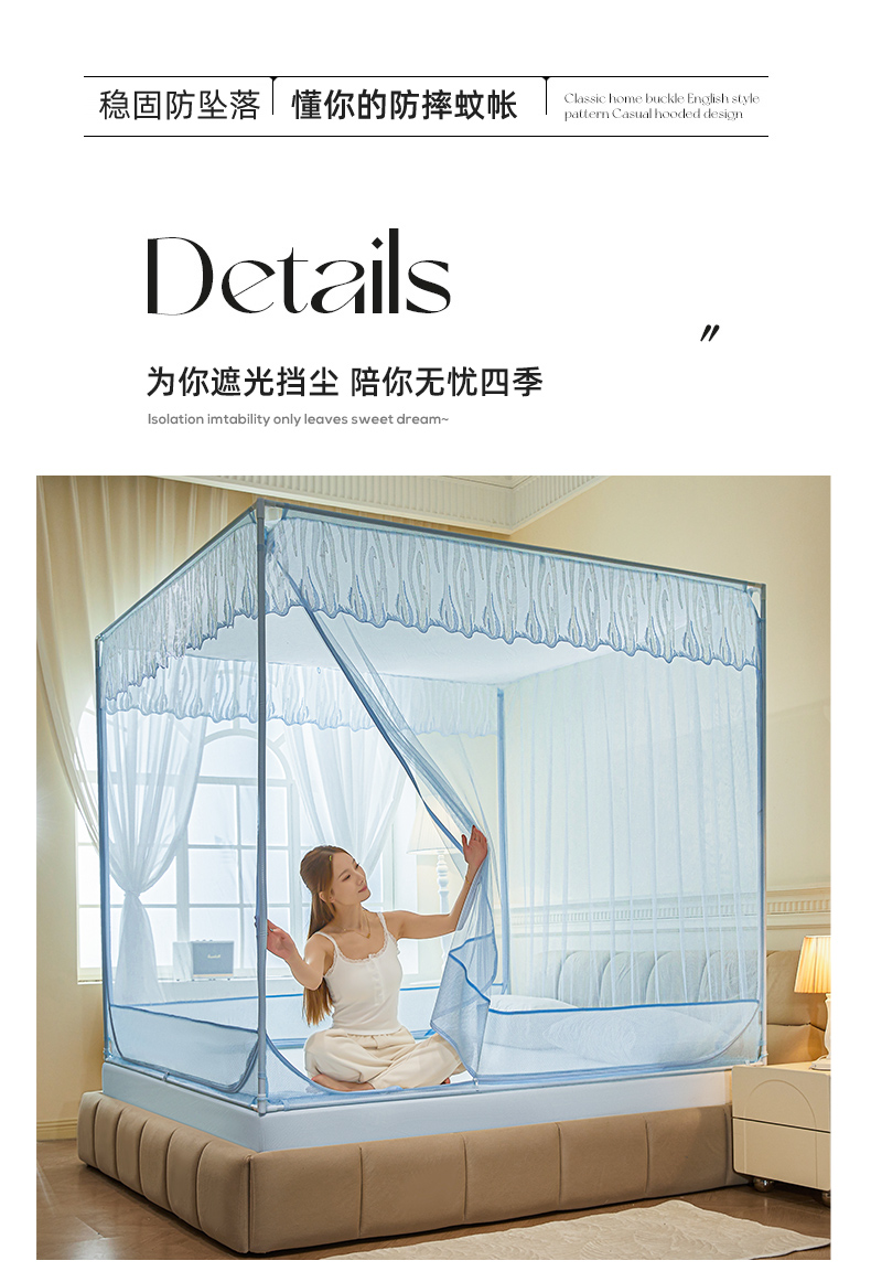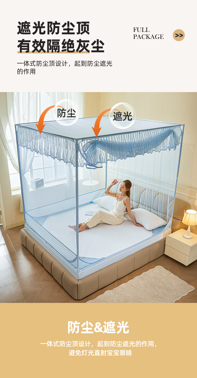 自然醒加密遮光防尘顶拉链蚊帐家用卧室儿童防摔掉床回底蒙古包2502HH