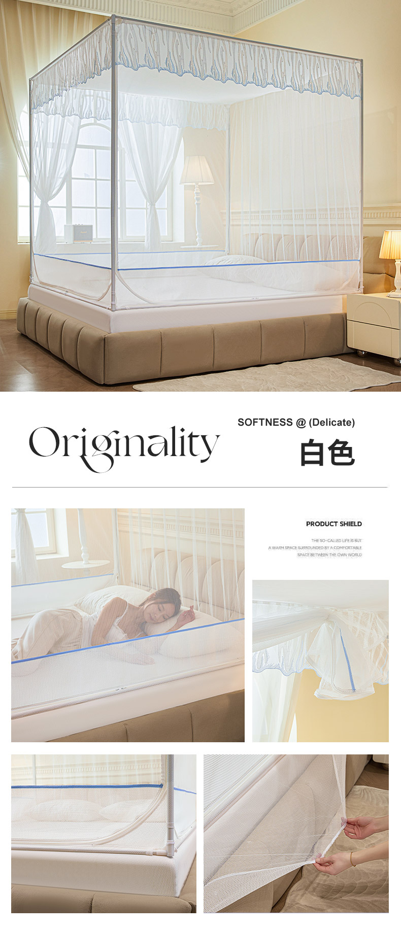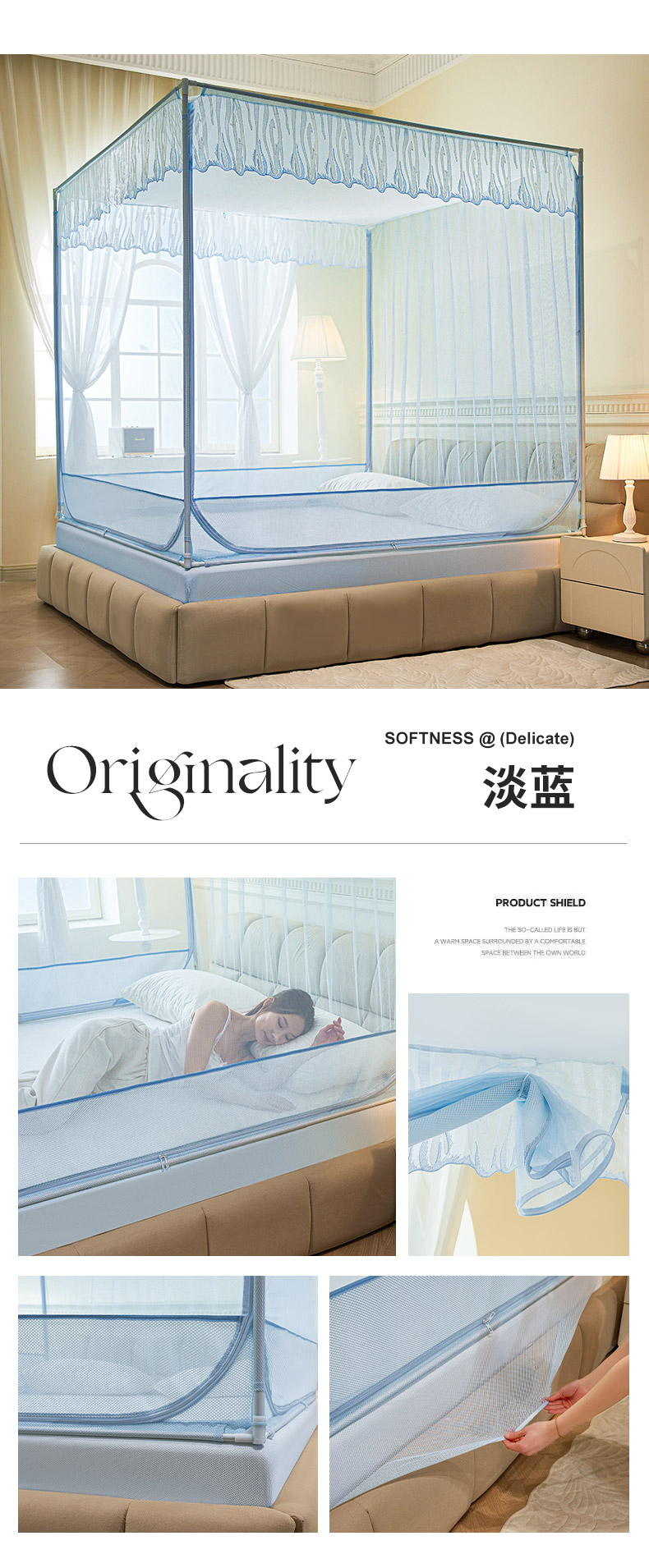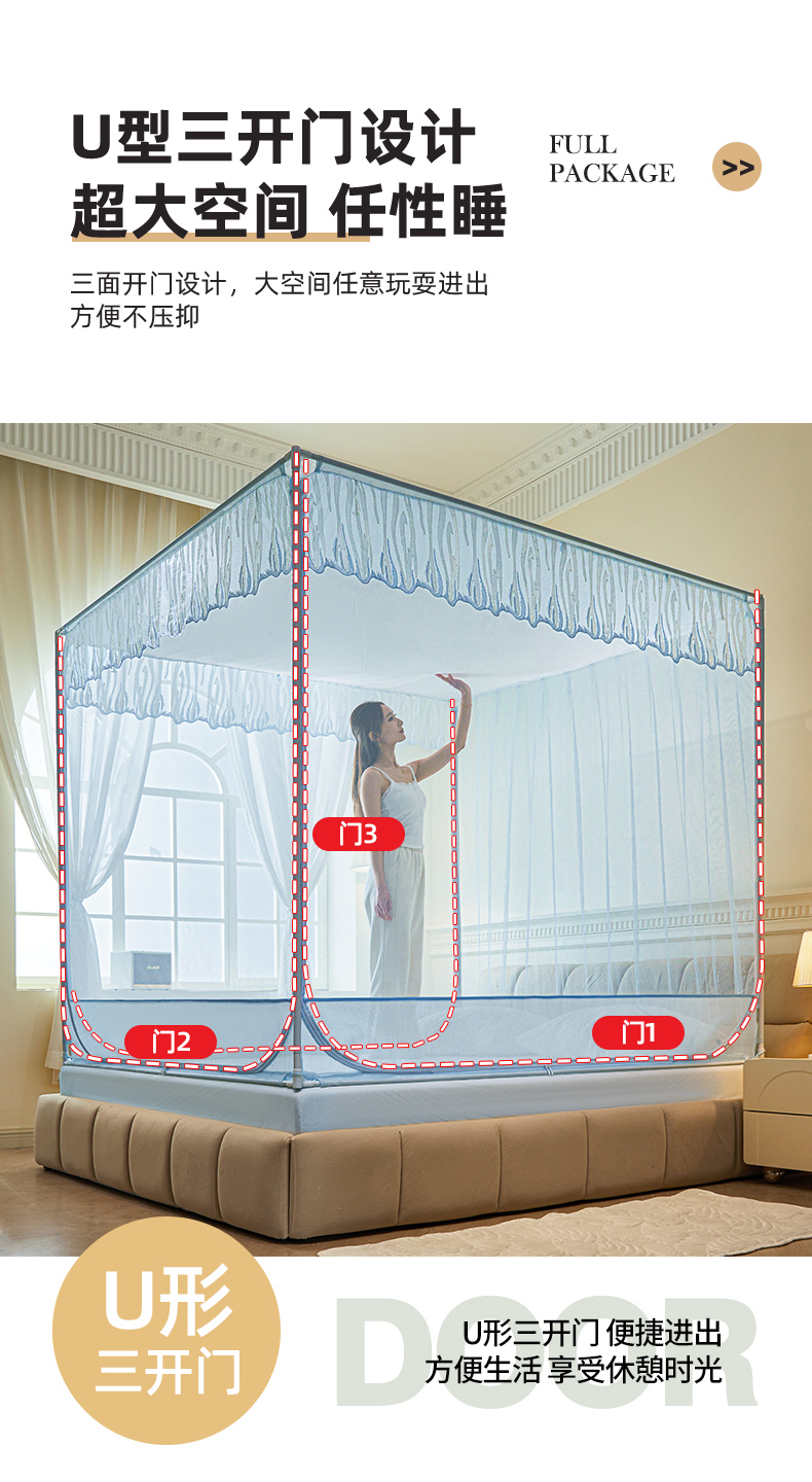 自然醒加密遮光防尘顶拉链蚊帐家用卧室儿童防摔掉床回底蒙古包2502HH