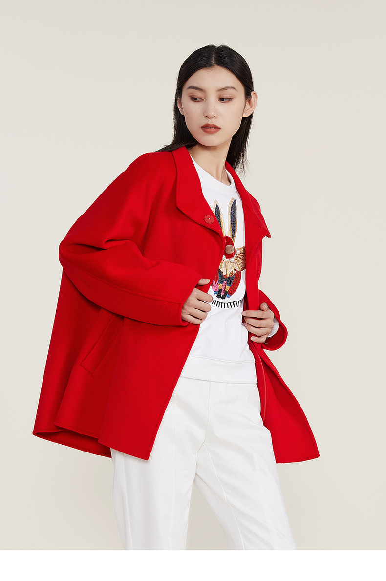 谜底绵羊毛呢大衣女2022冬季新款A型中长款绵呢子外套女224MD1585