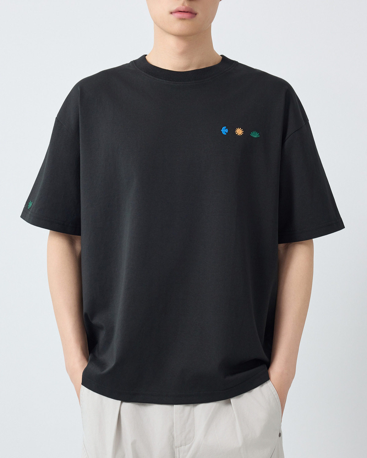 墨麦客男装美式休闲短袖t恤男2026春夏新款趣味刺绣男士T恤75190.