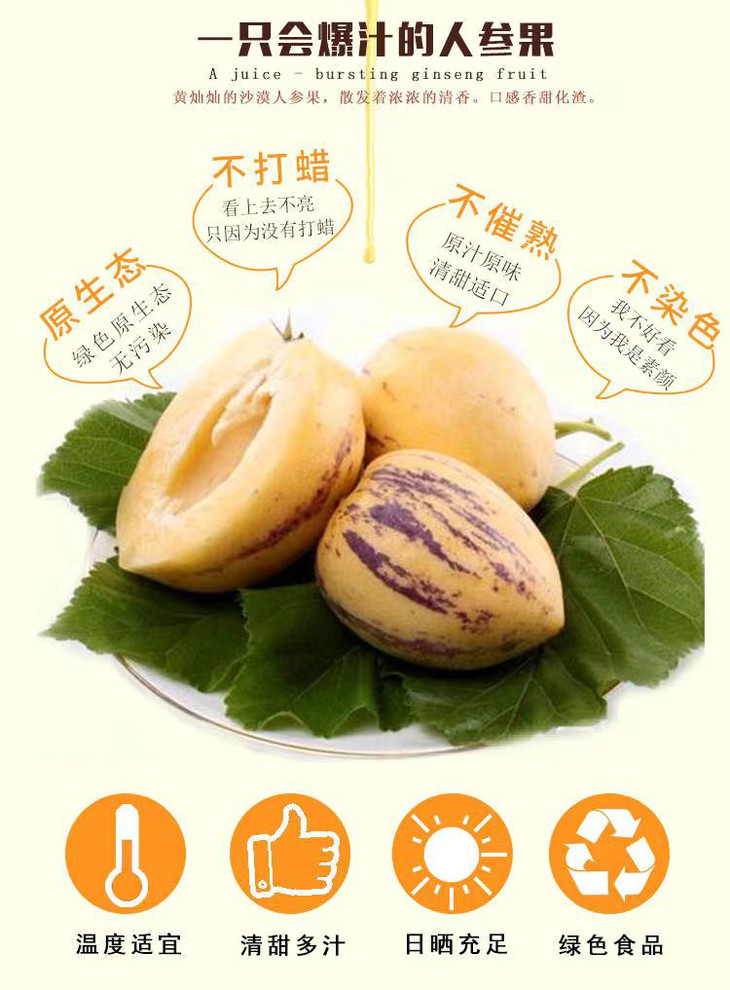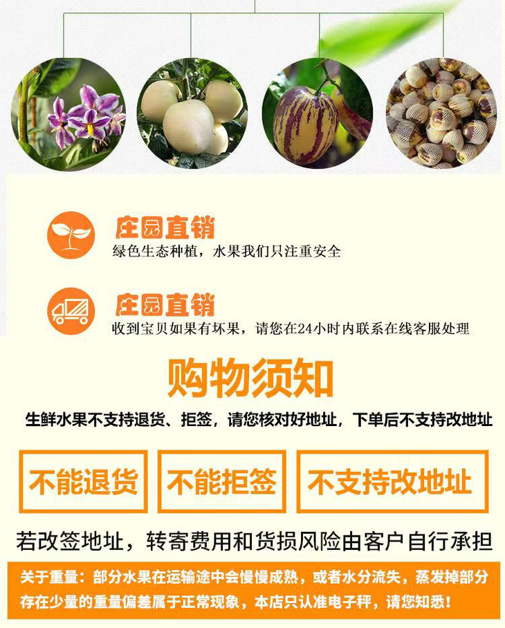 6:人参果个数差异比较大,具体以称重为准,个数仅供参考,不接受以个数不足为由的售后!