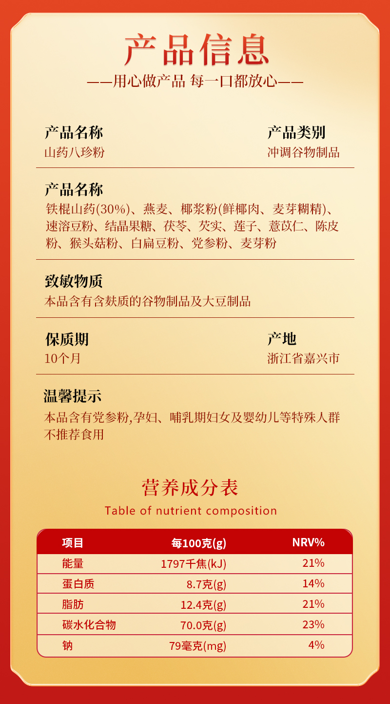 悦意山药八珍粉B500g*1