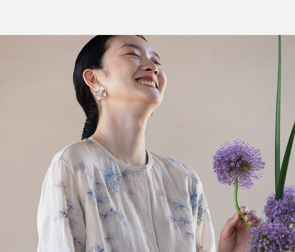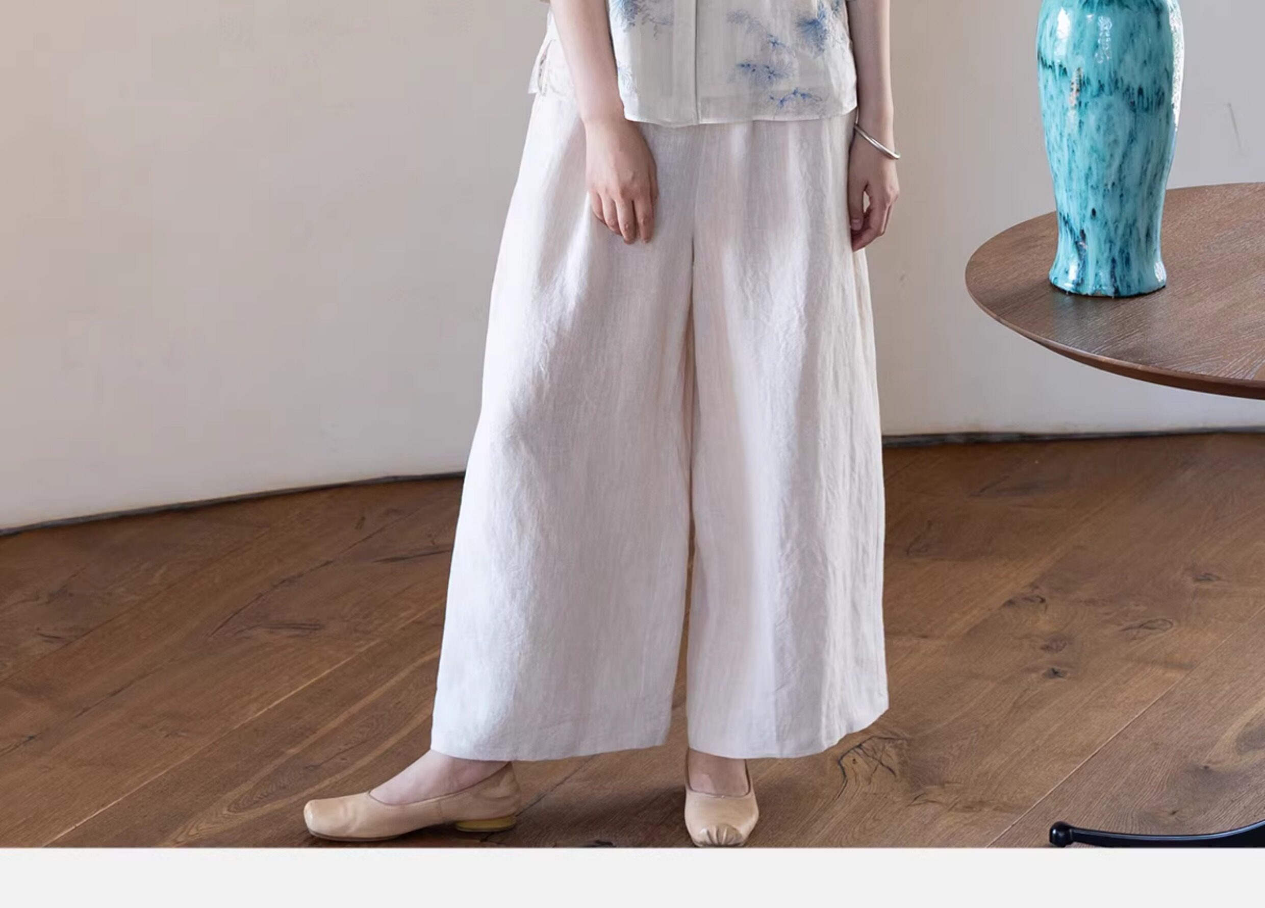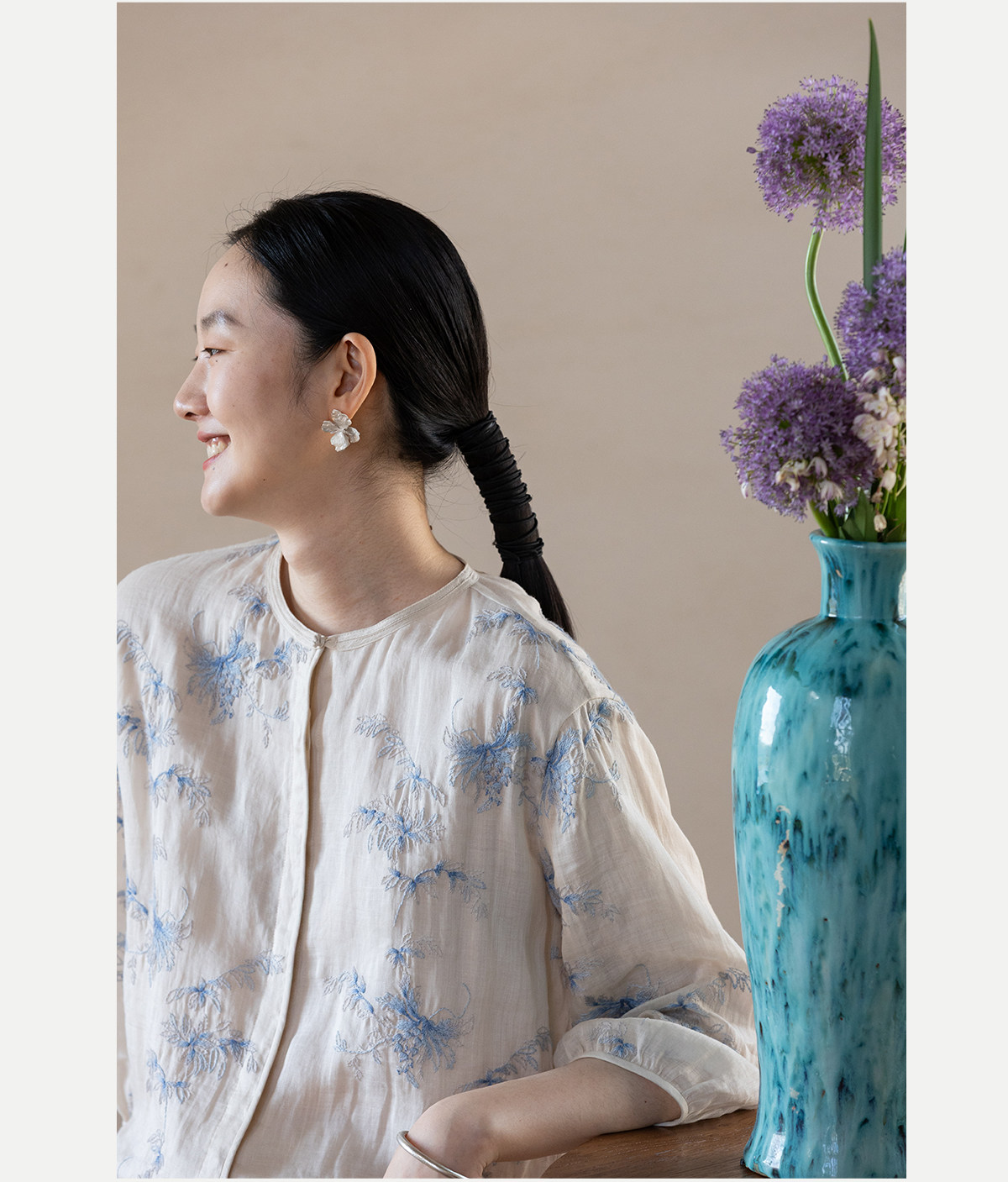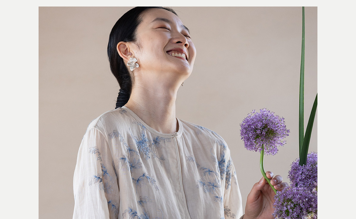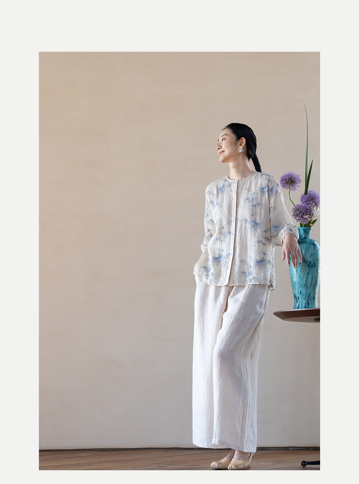 牧衣游原创 匹绣苎麻衬衫女新款轻薄圆领七分袖文艺宽松衬衣 花悦
