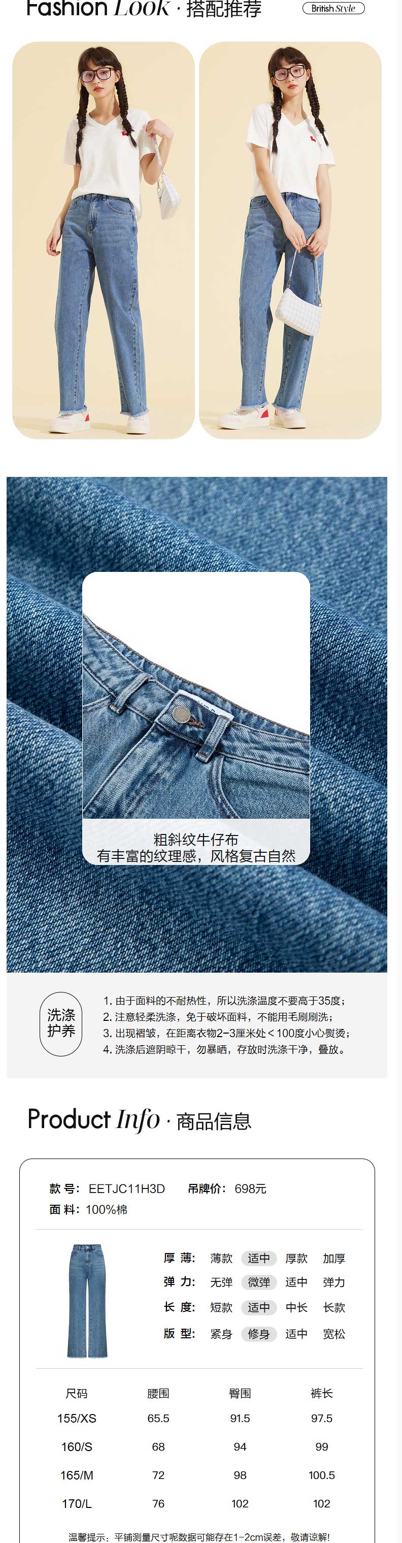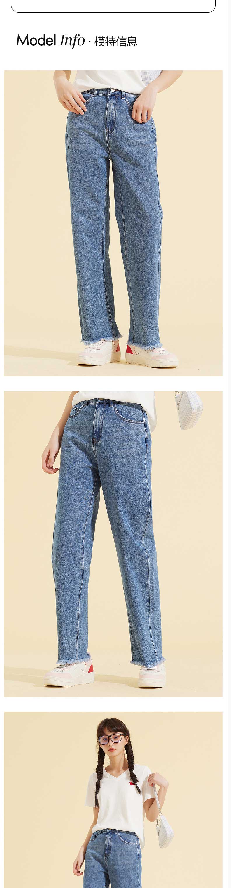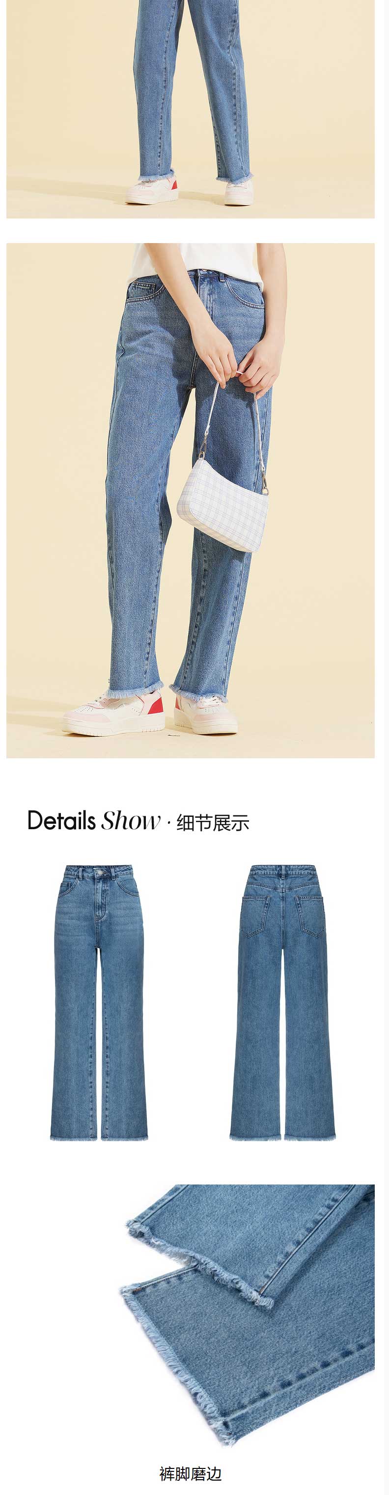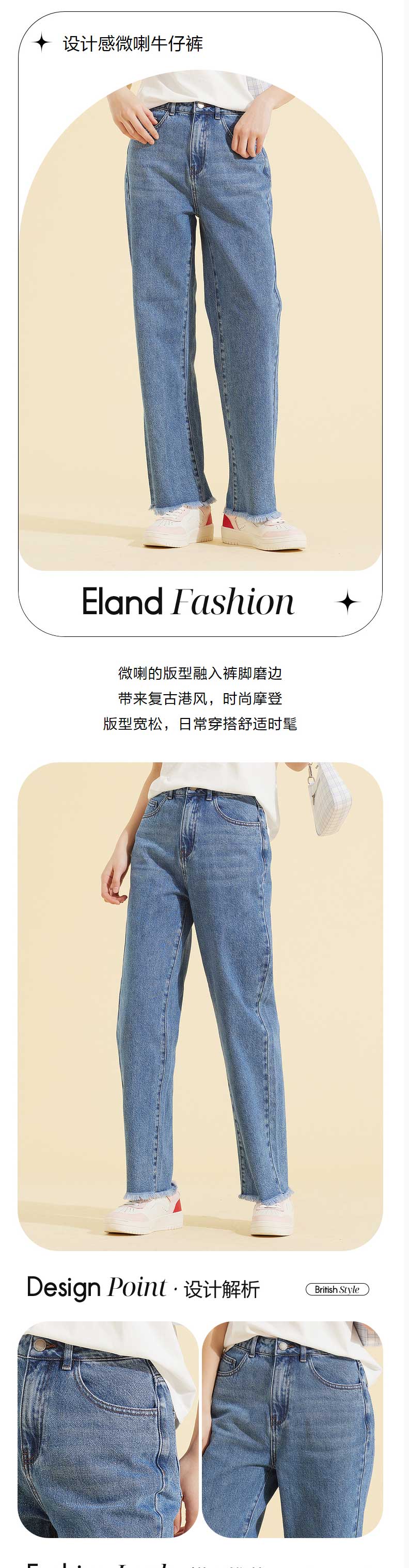ELAND衣恋2022年春季新款小个子显瘦简约百搭磨边微喇裤牛仔裤女EETJC11H3D