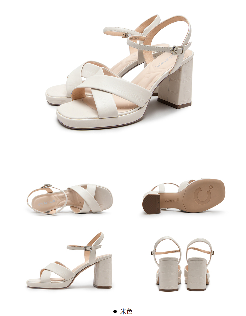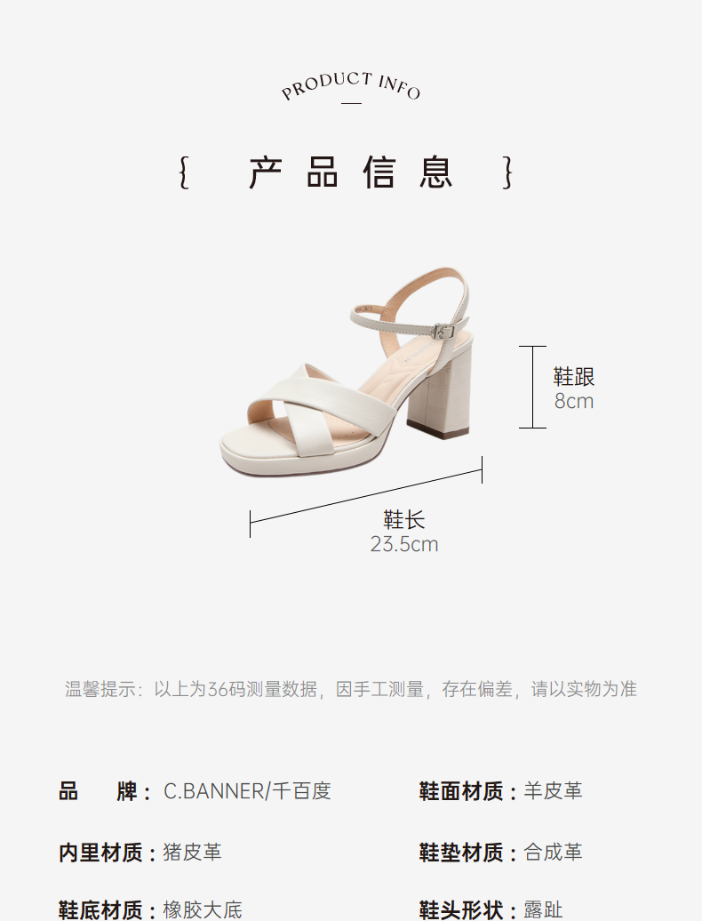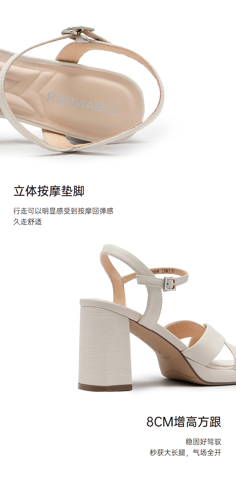 千百度女鞋夏季时装凉鞋百搭超高跟凉鞋一字带真皮鞋 A23350960