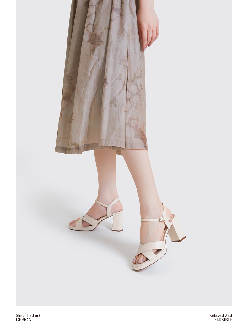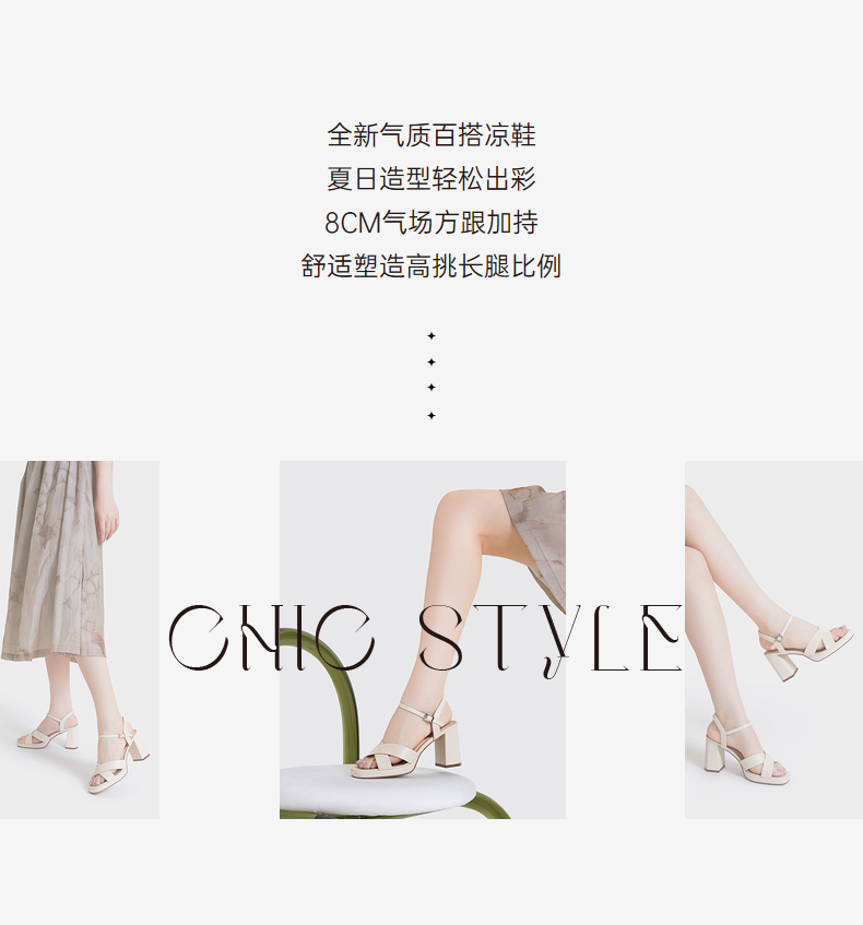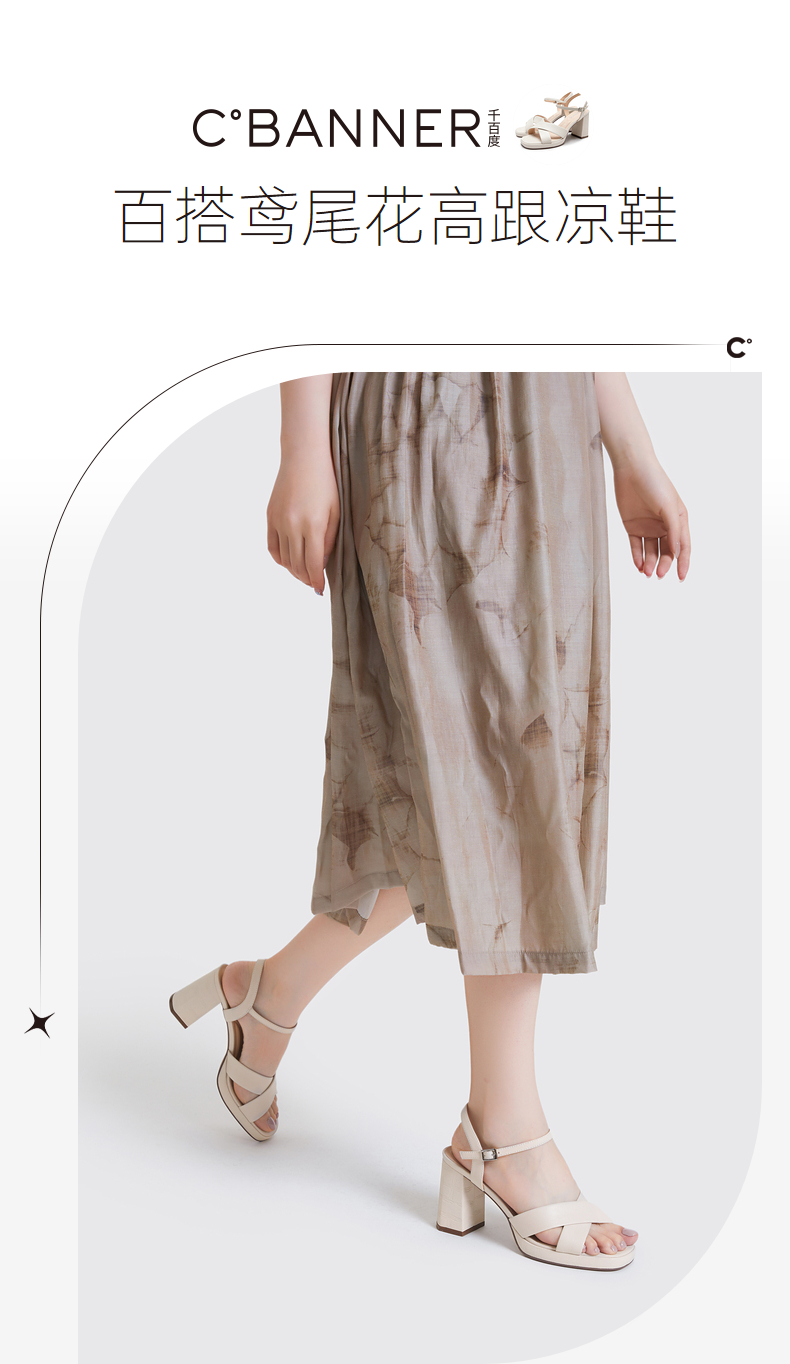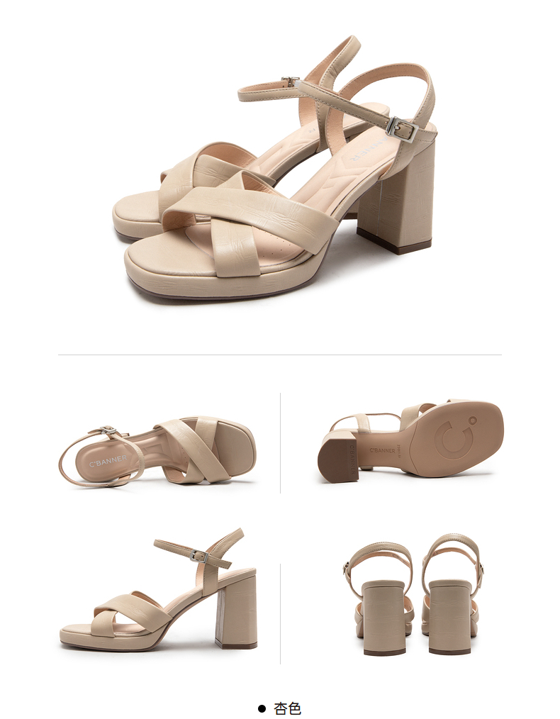 千百度女鞋夏季时装凉鞋百搭超高跟凉鞋一字带真皮鞋 A23350960