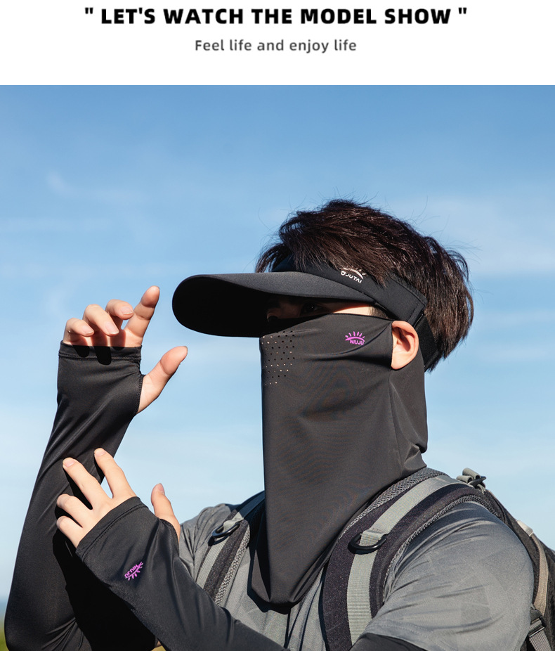 防晒面罩男夏遮全脸男士口罩面纱骑行护颈男款冰丝围脖子男脸罩
