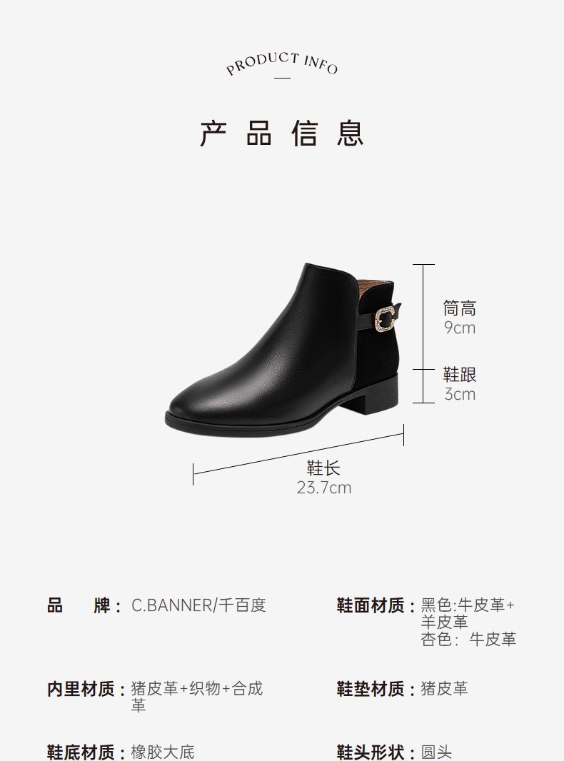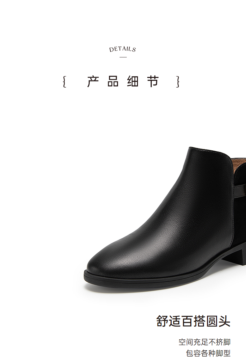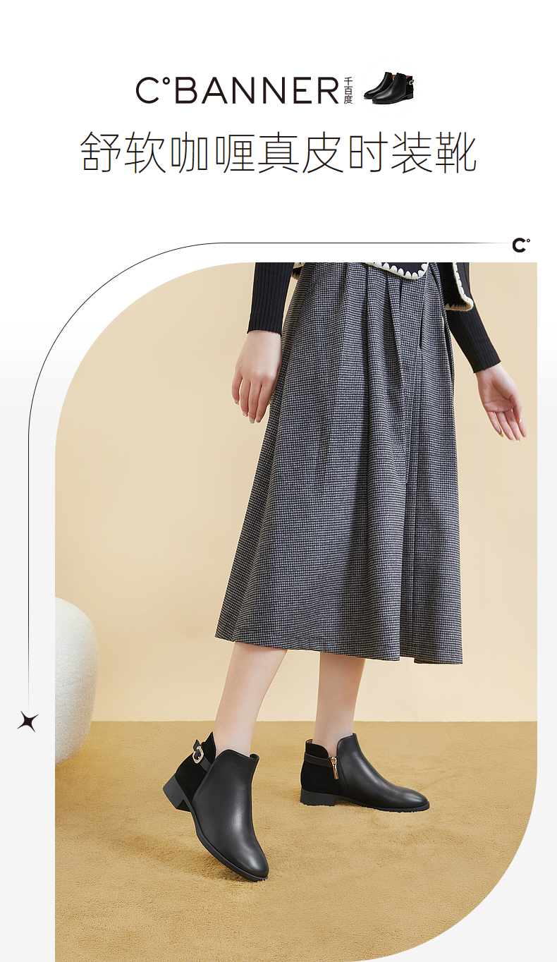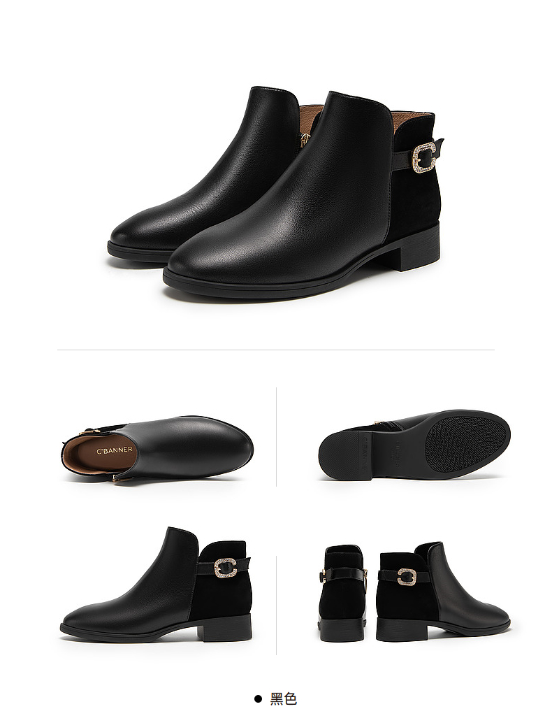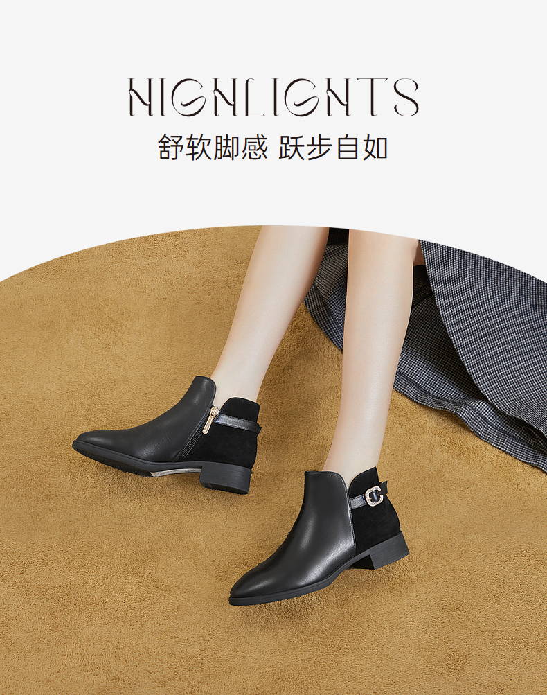 千百度真皮时装靴秋冬粗跟西部靴炸街小短靴子女鞋时尚A23575301