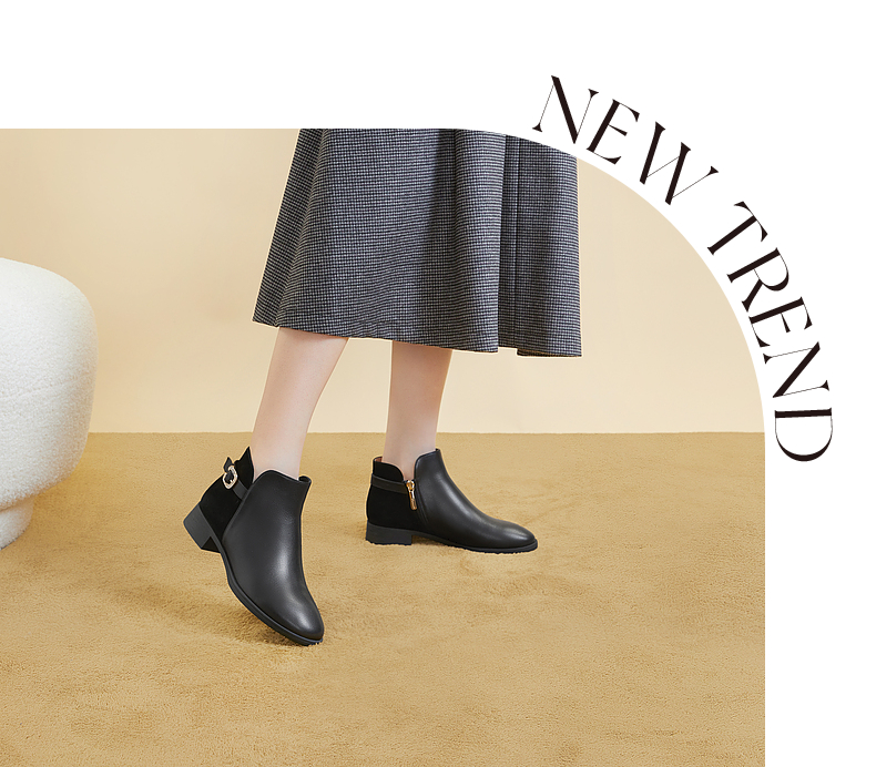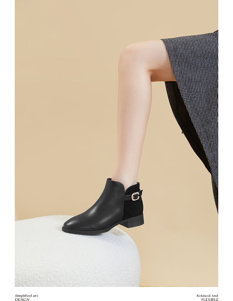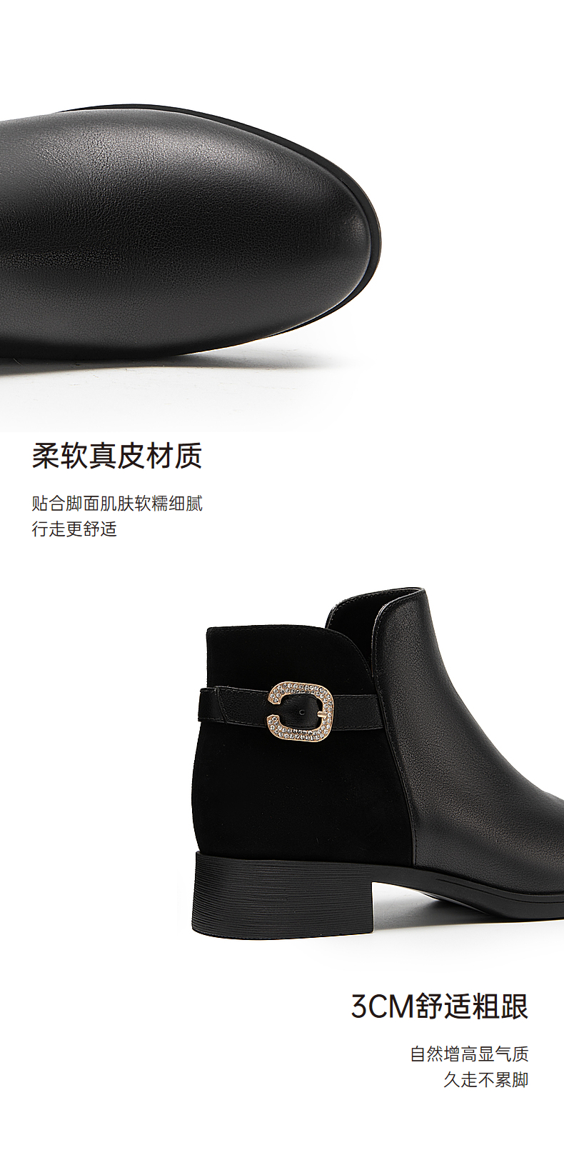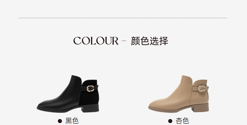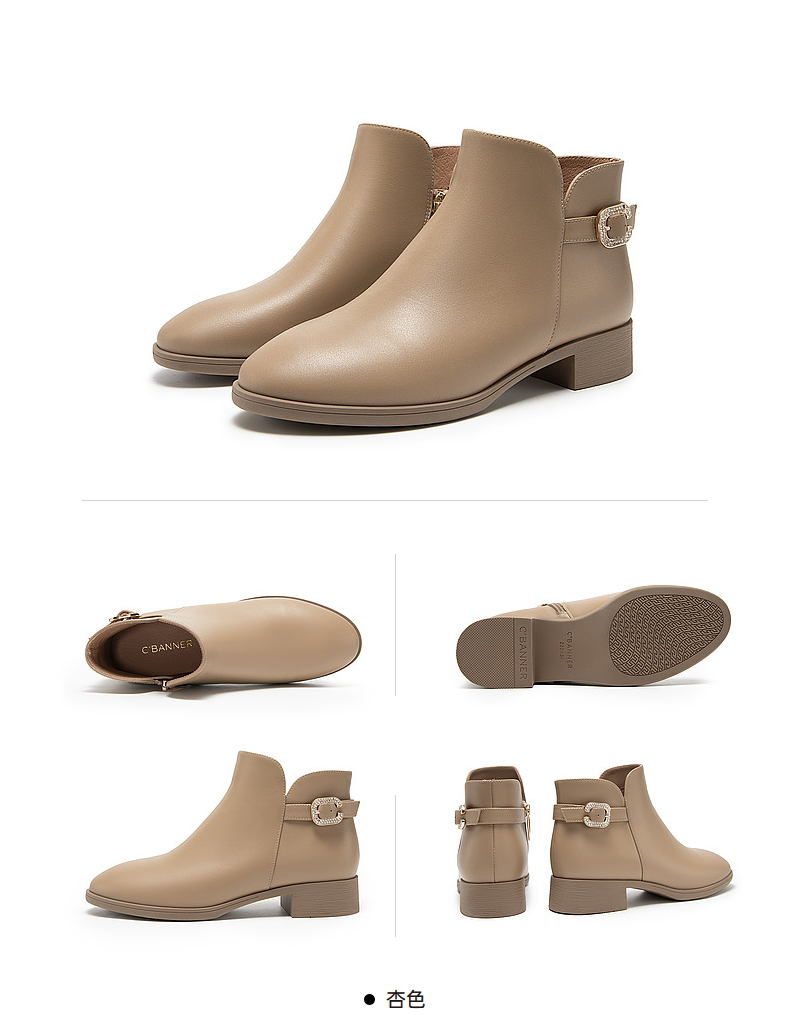 千百度真皮时装靴秋冬粗跟西部靴炸街小短靴子女鞋时尚A23575301