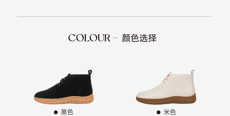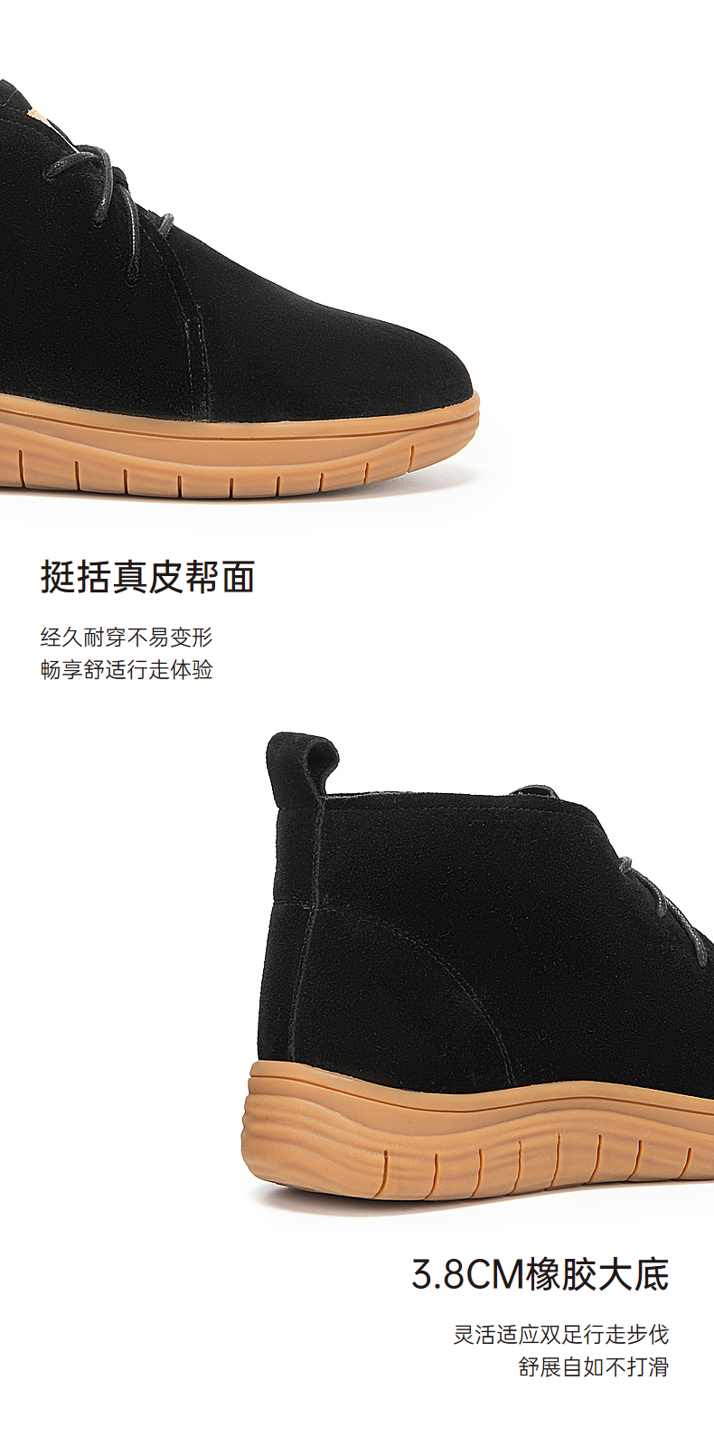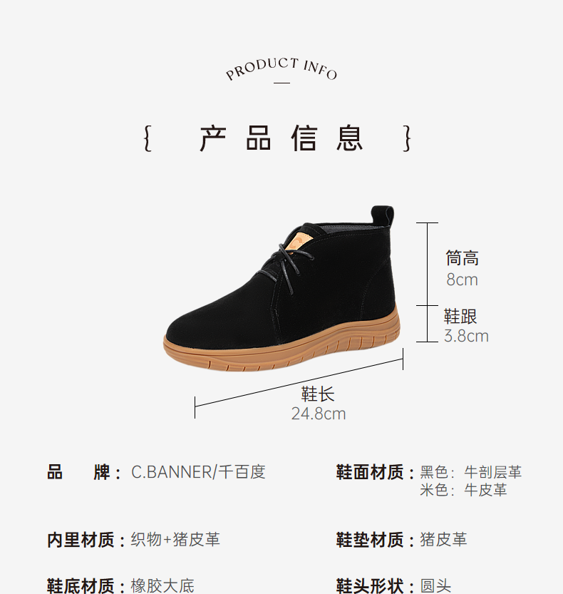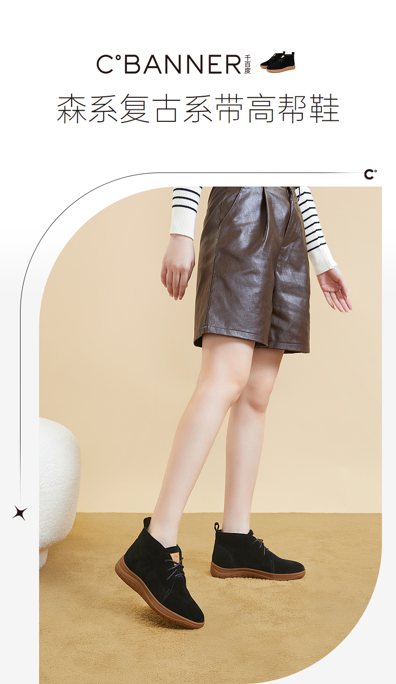 千百度平底休闲高帮鞋秋冬真皮显瘦厚底增高短靴女鞋舒适A23583302