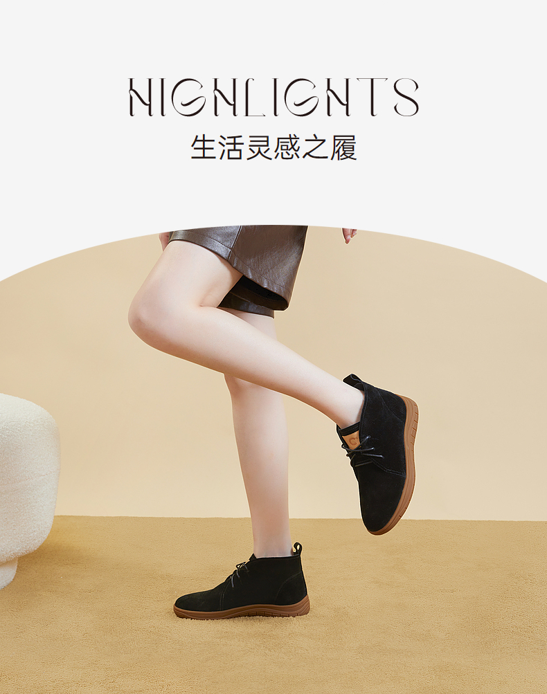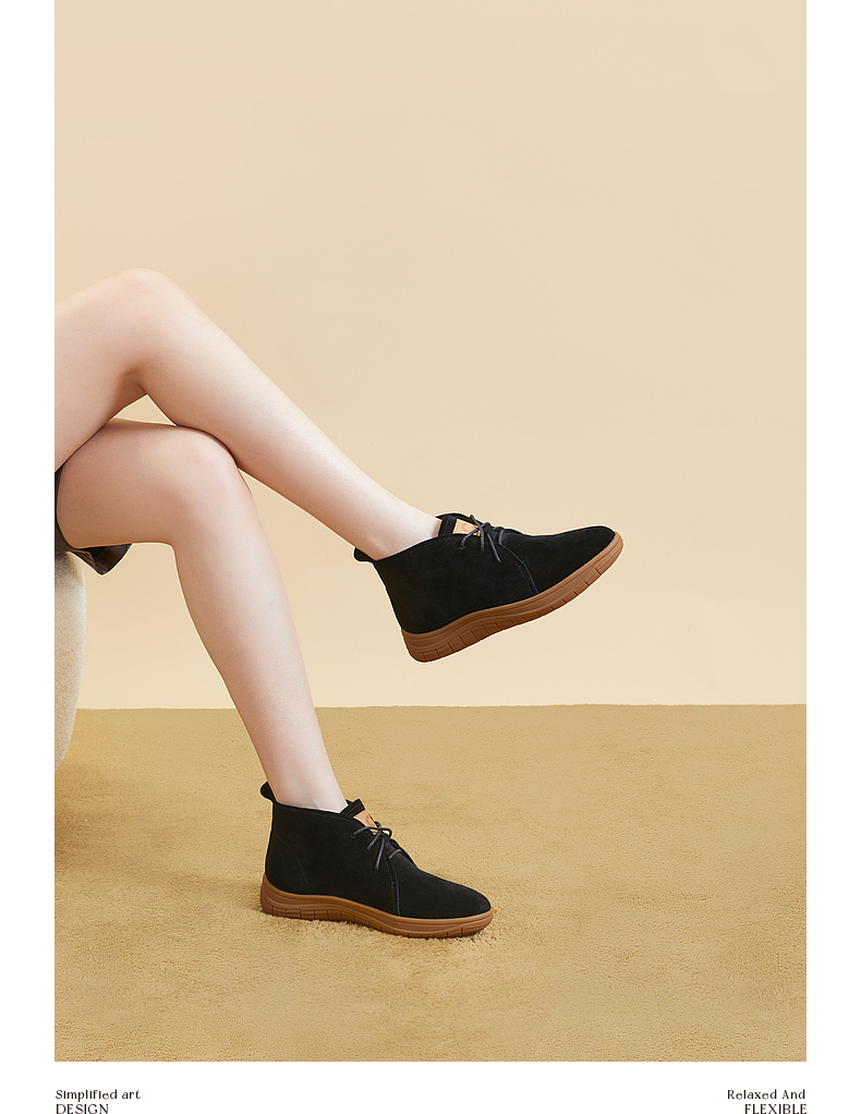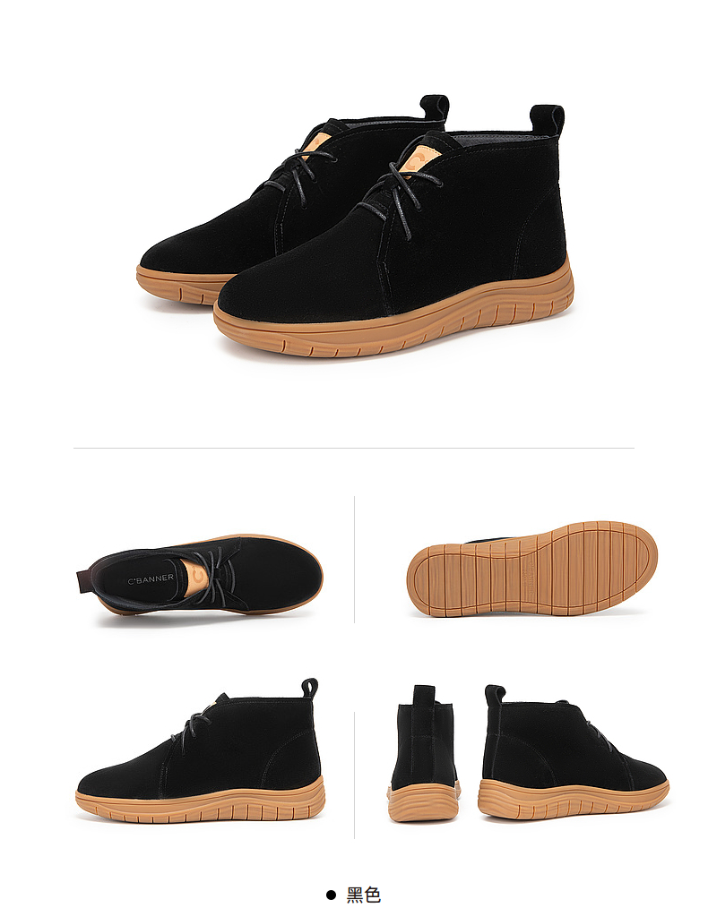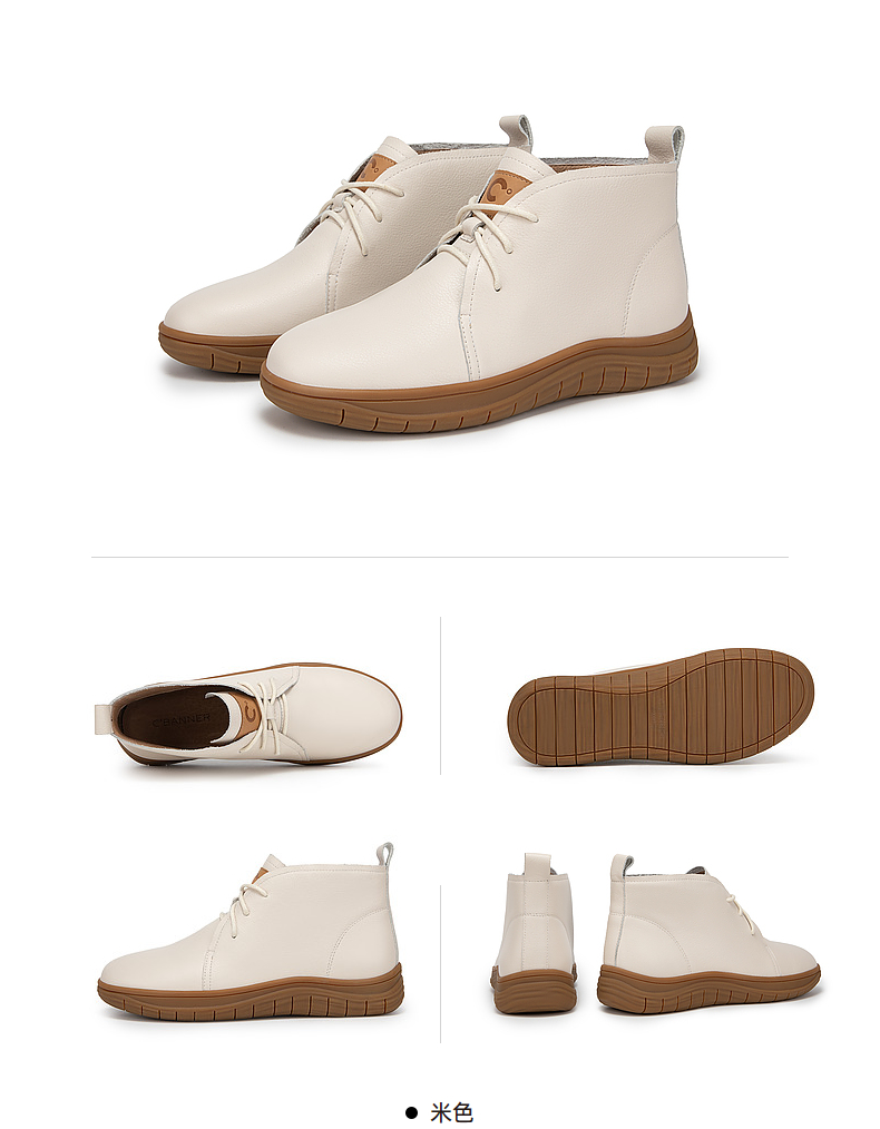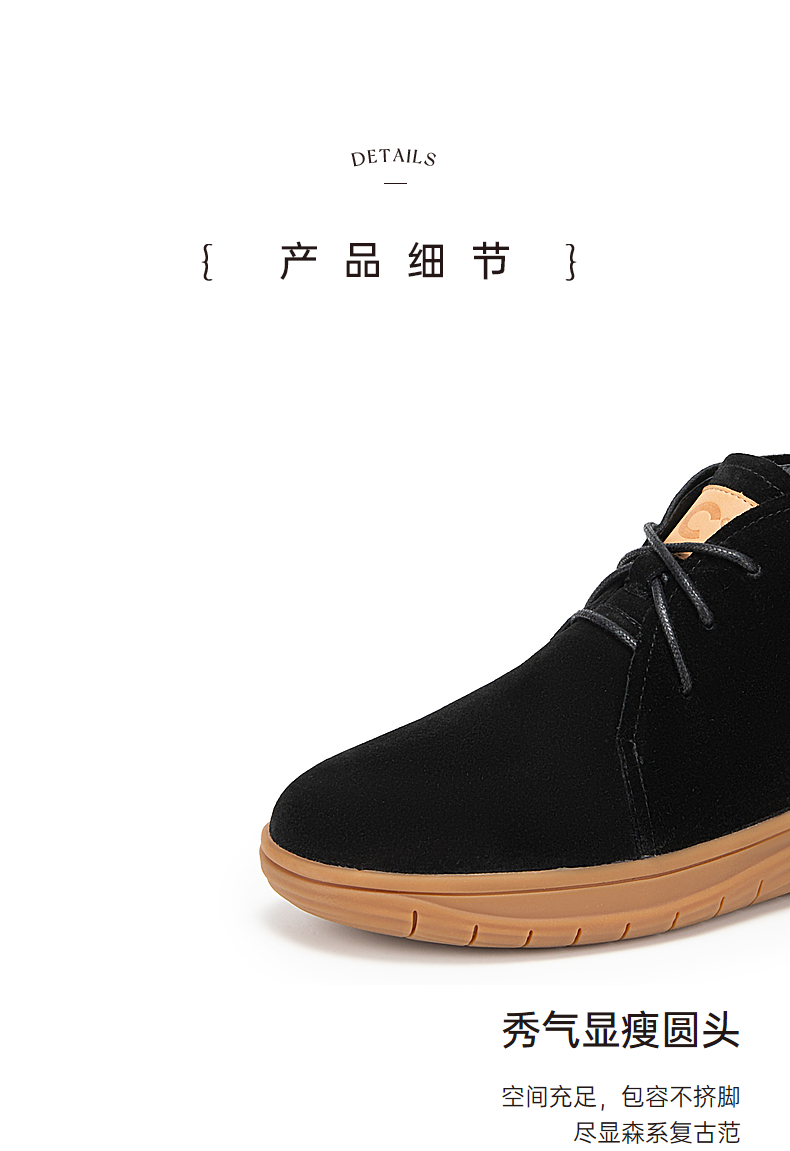 千百度平底休闲高帮鞋秋冬真皮显瘦厚底增高短靴女鞋舒适A23583302