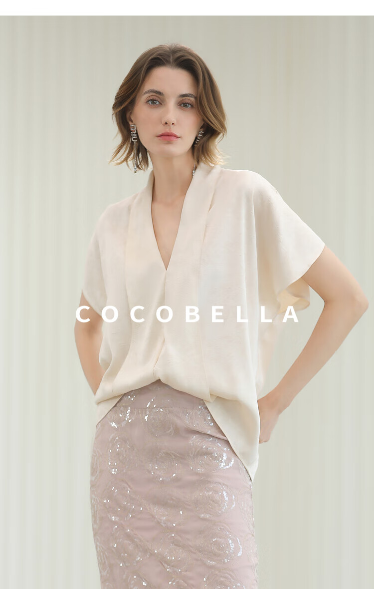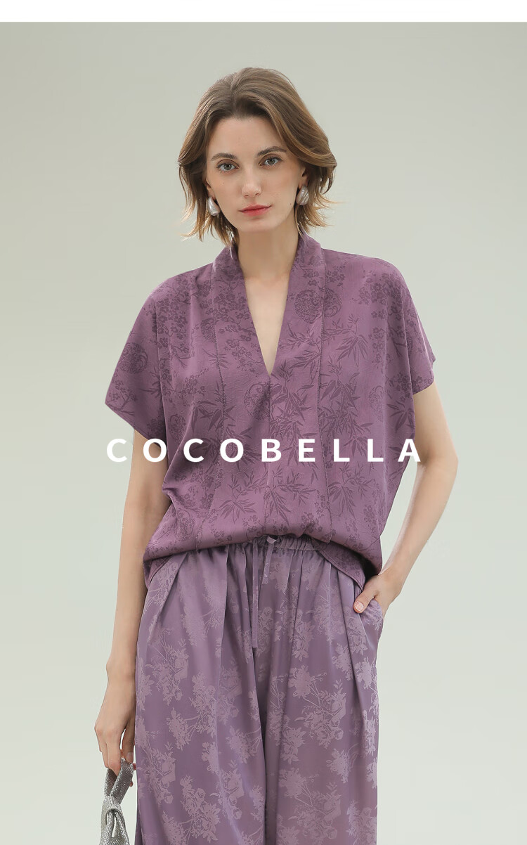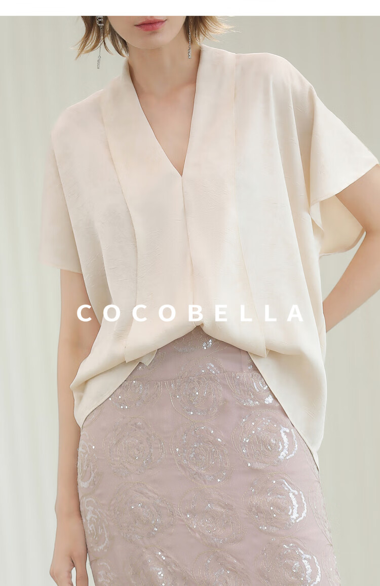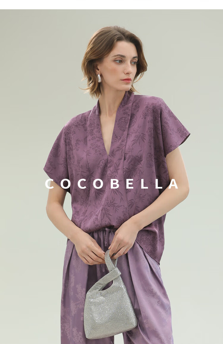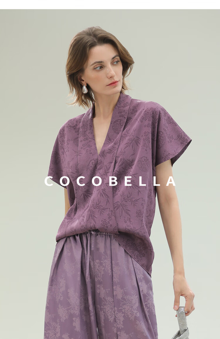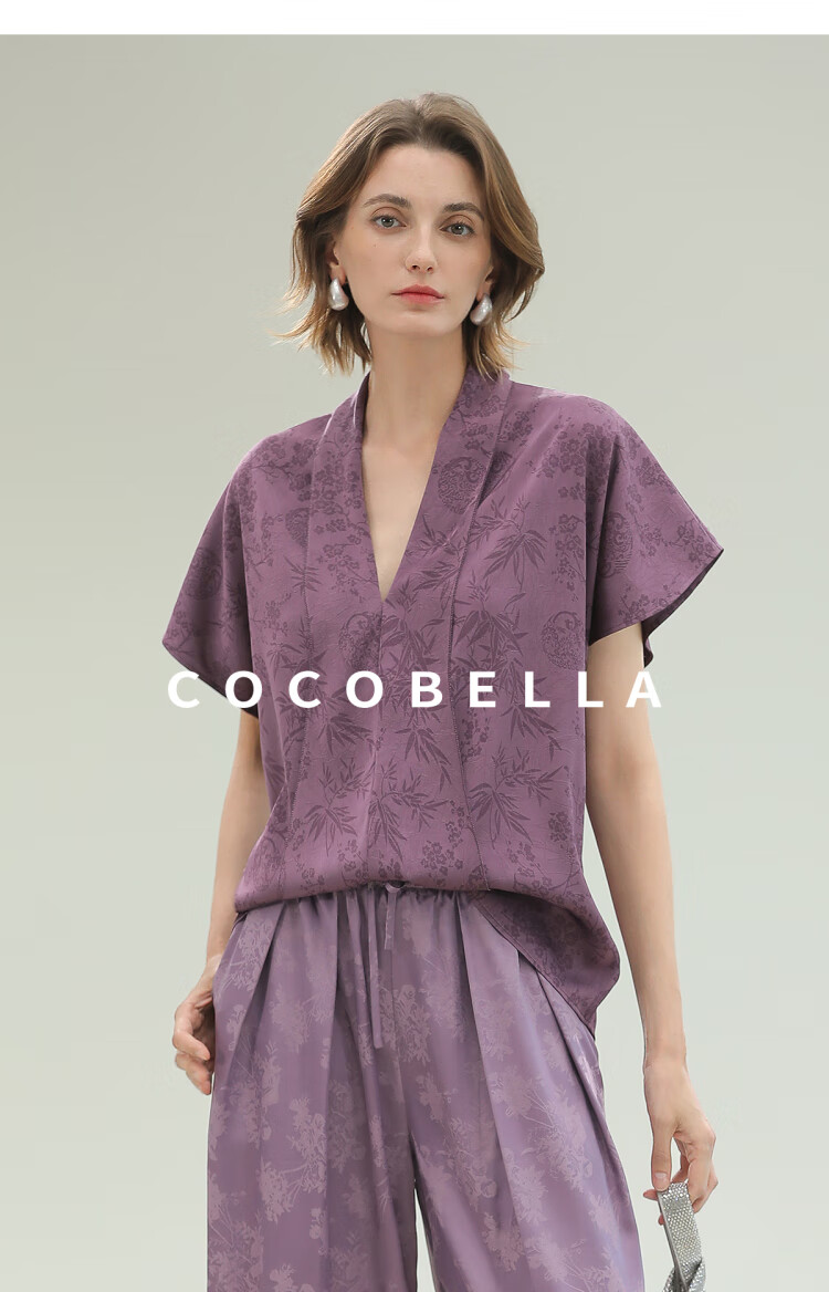 COCOBELLA重工对丝暗纹提花缎国风短袖衬衫新中式罩衫SR3198
