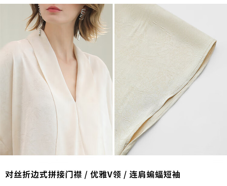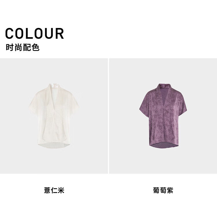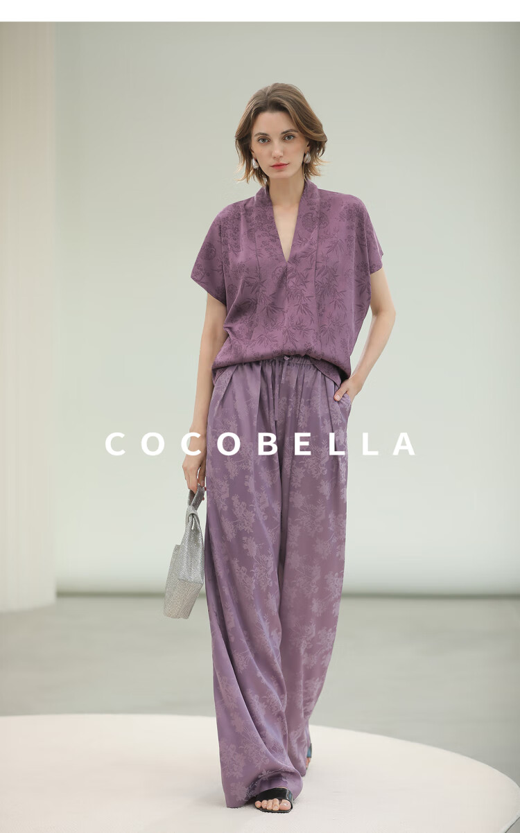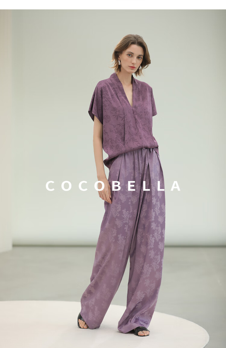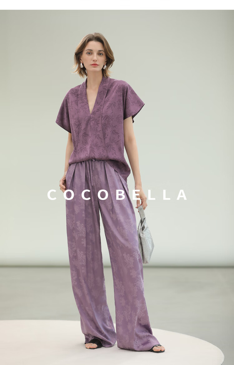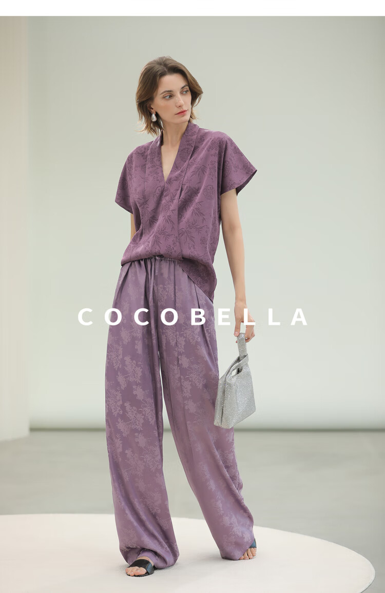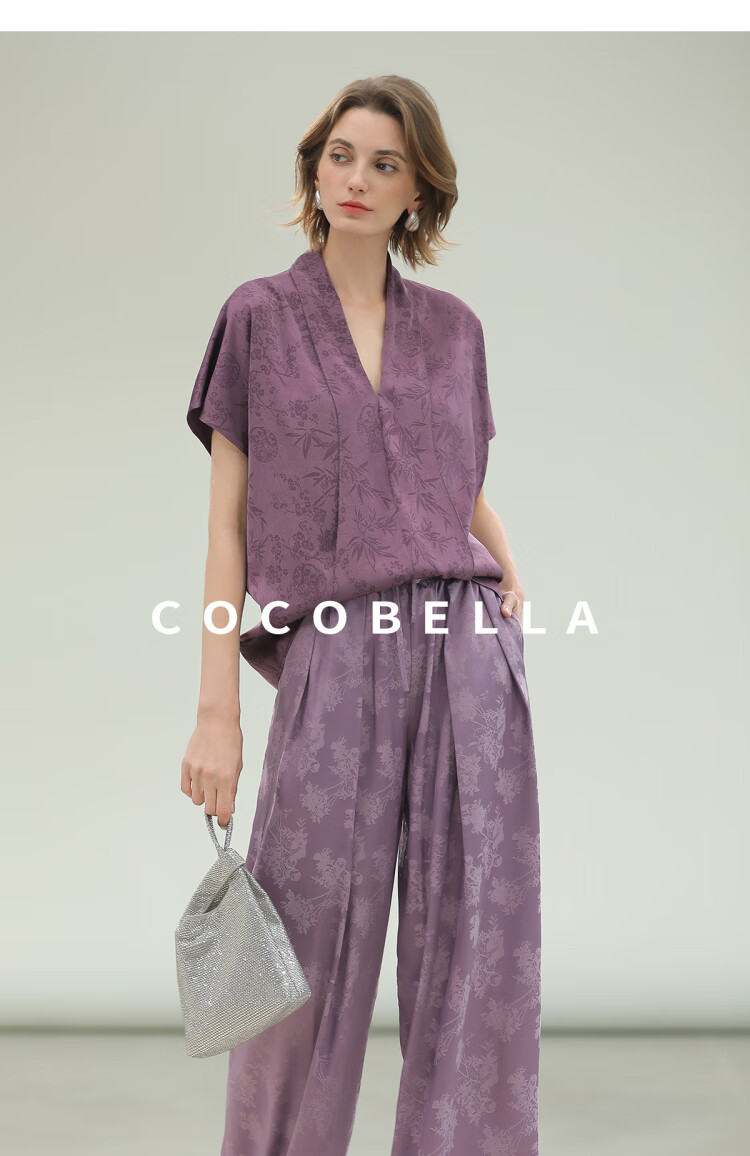 COCOBELLA重工对丝暗纹提花缎国风短袖衬衫新中式罩衫SR3198