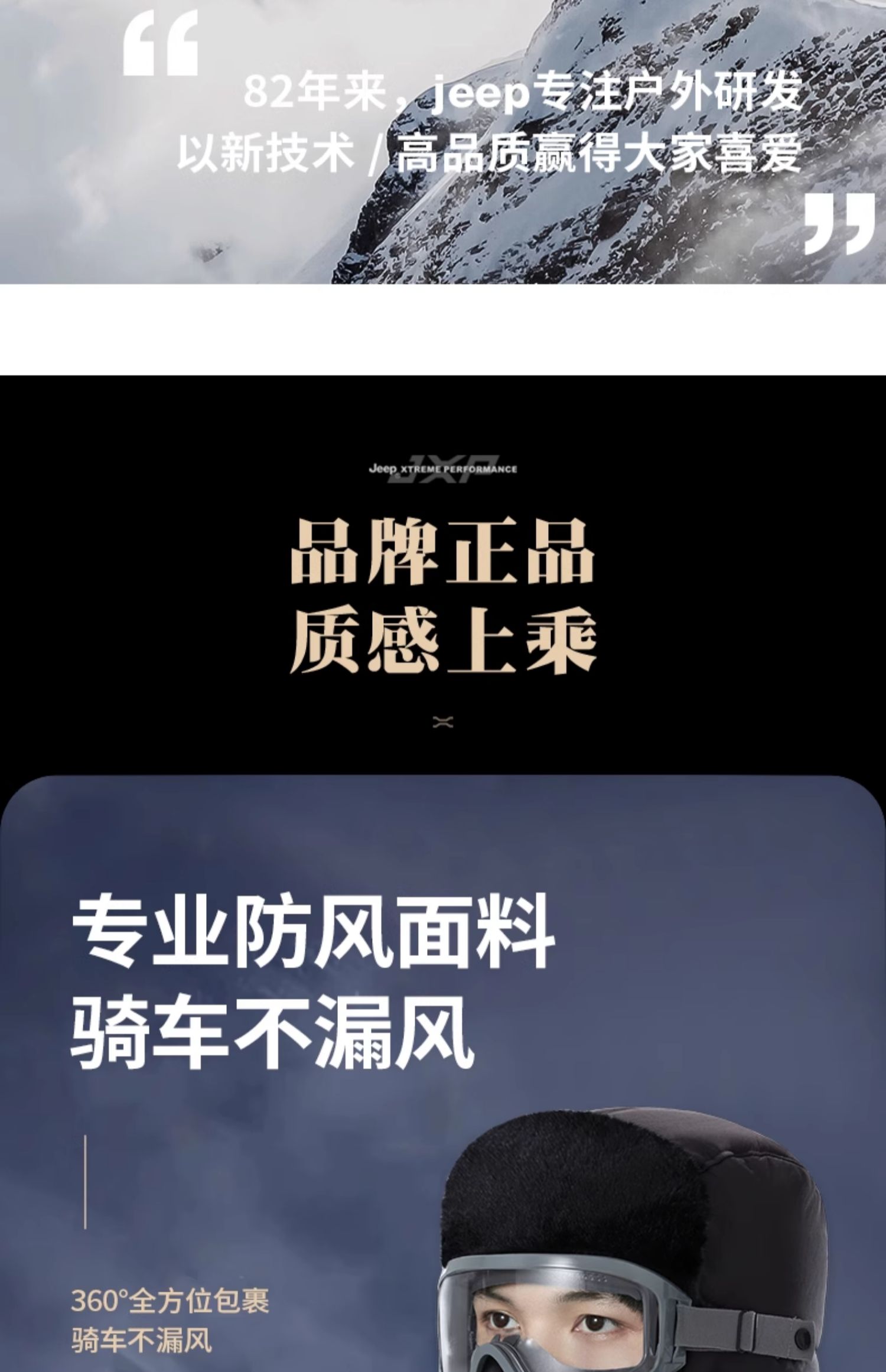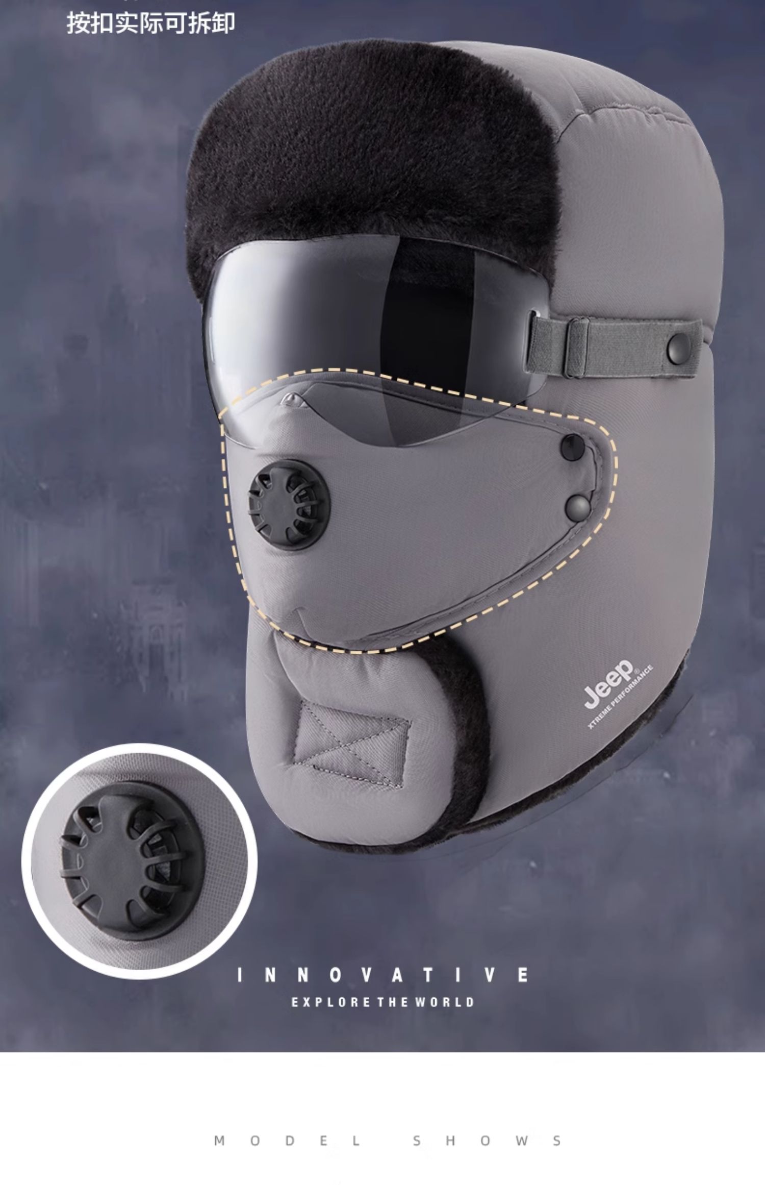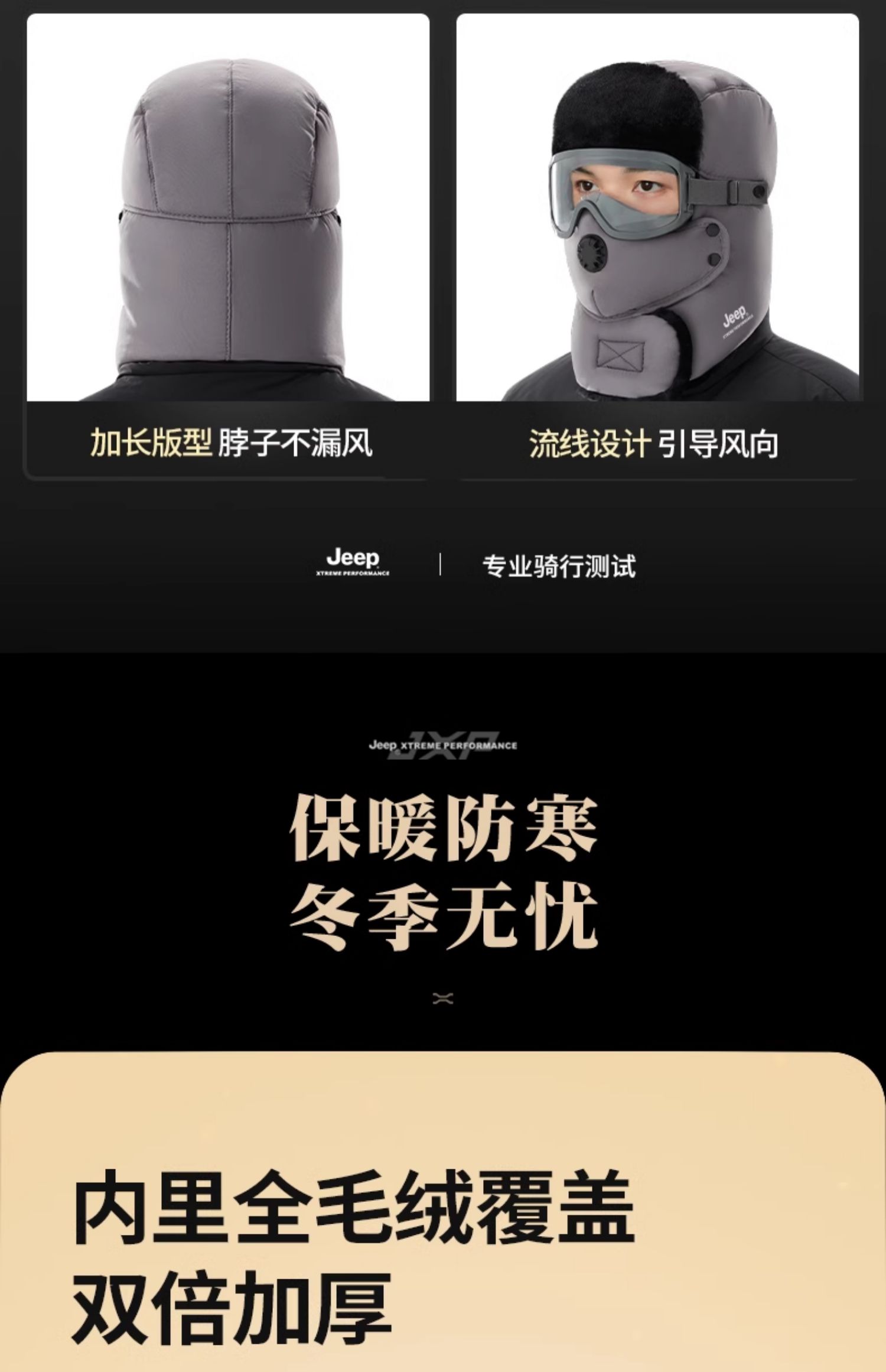 JEEP加厚雷锋帽男冬季保暖神器东北骑车滑雪防风抗寒护耳面罩DB335