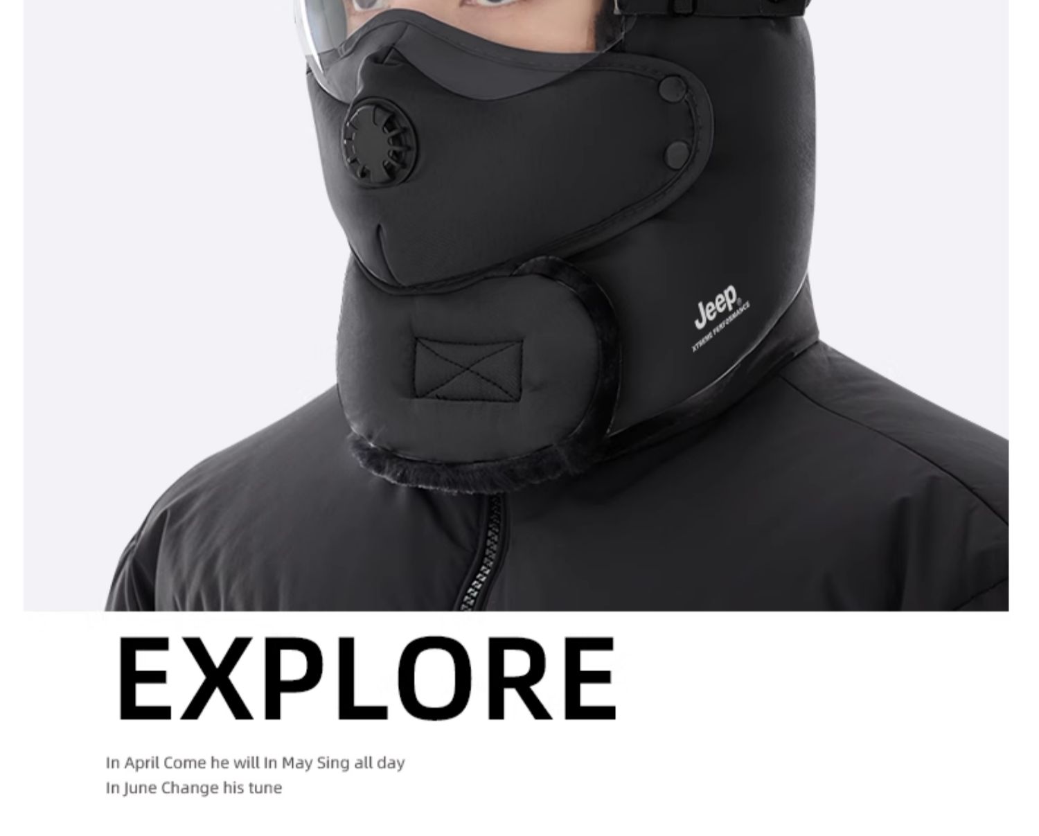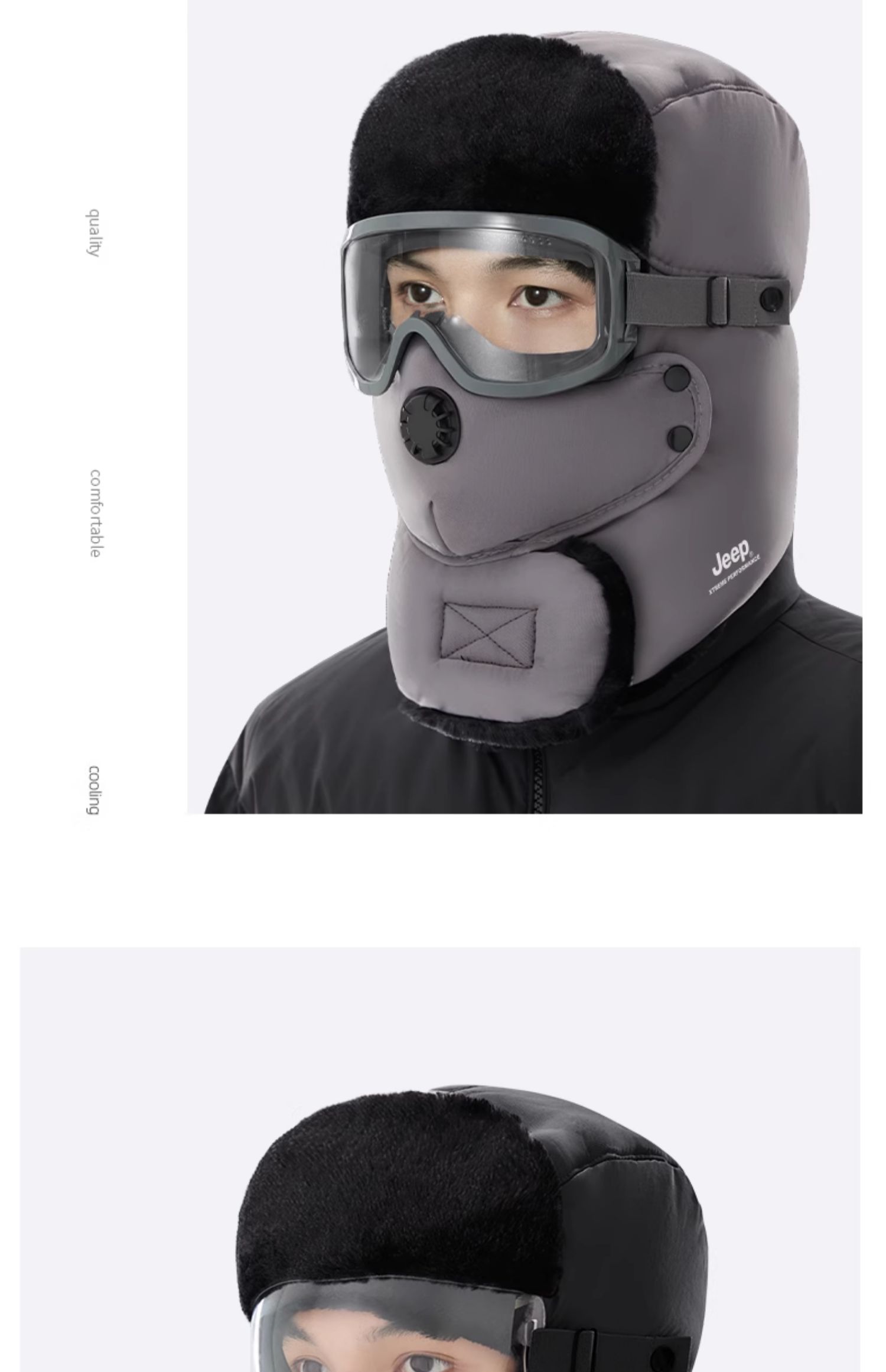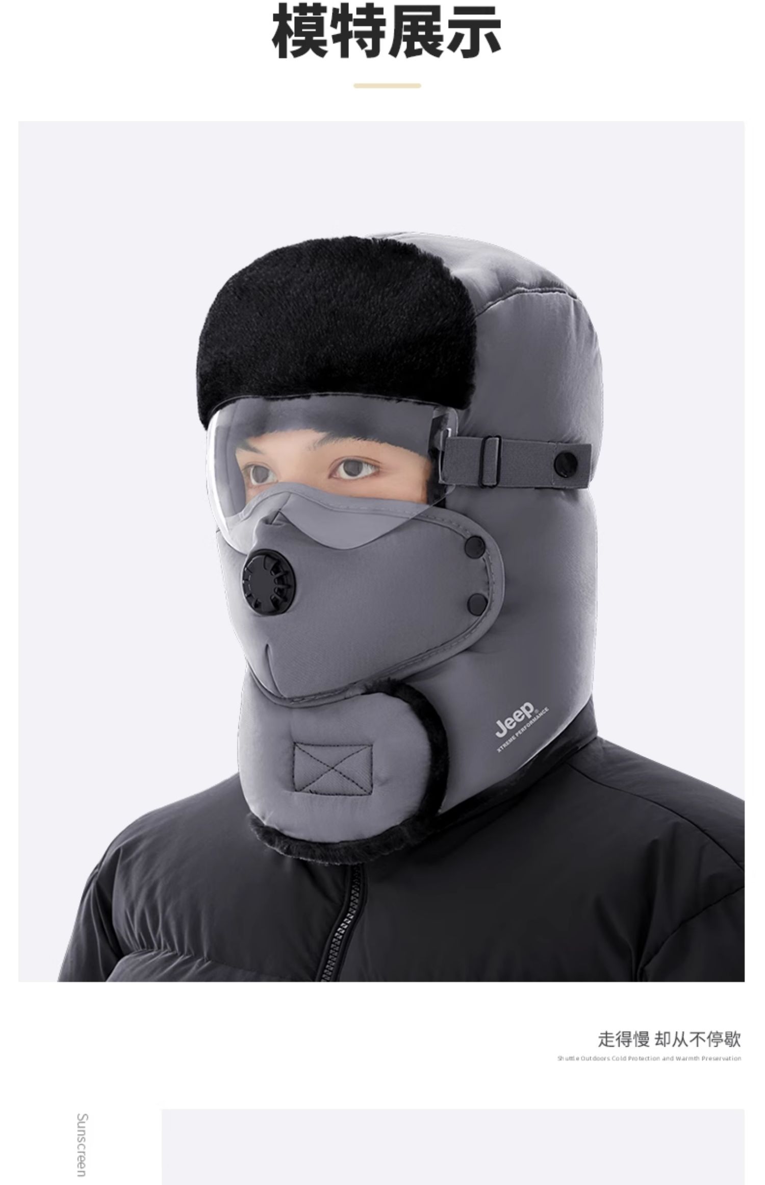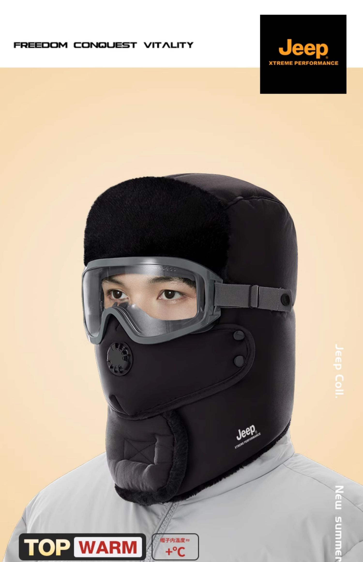 JEEP加厚雷锋帽男冬季保暖神器东北骑车滑雪防风抗寒护耳面罩DB335