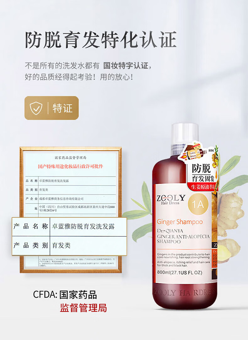 卓蓝雅 防脱固发头皮洗发水800ml/瓶