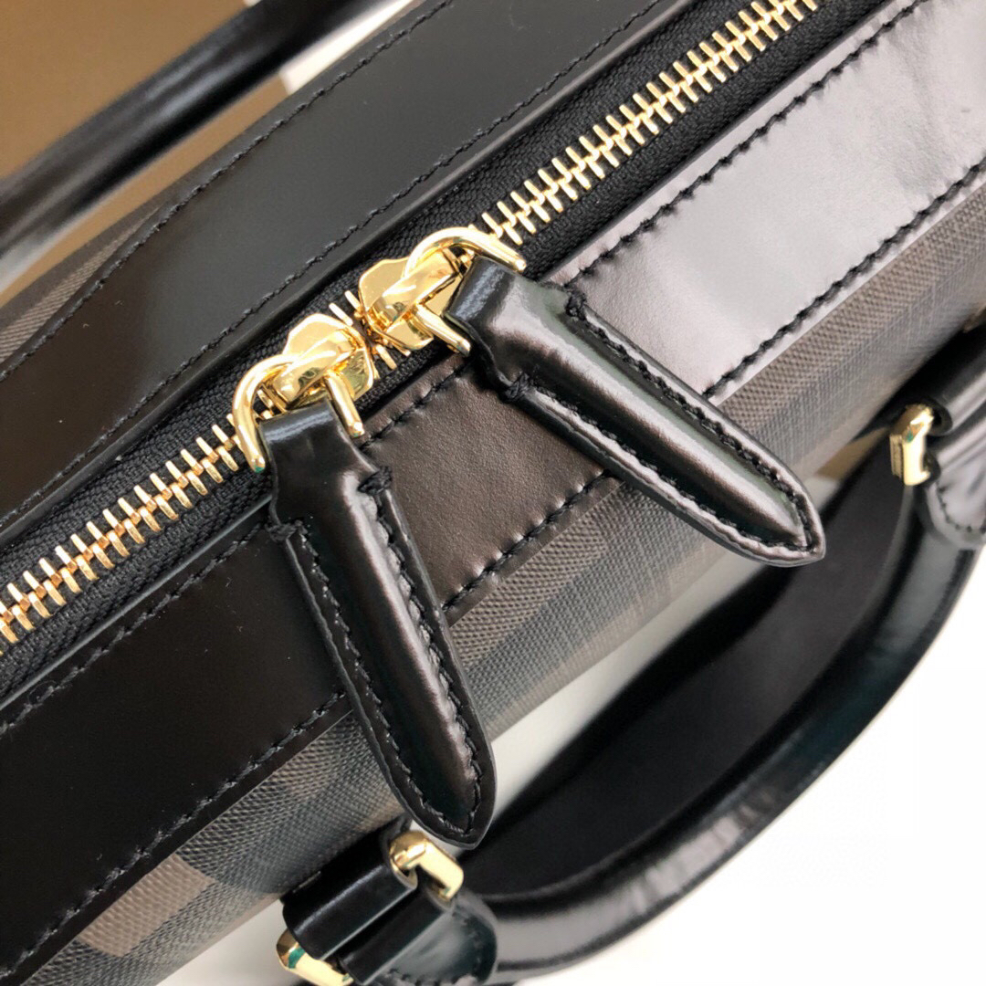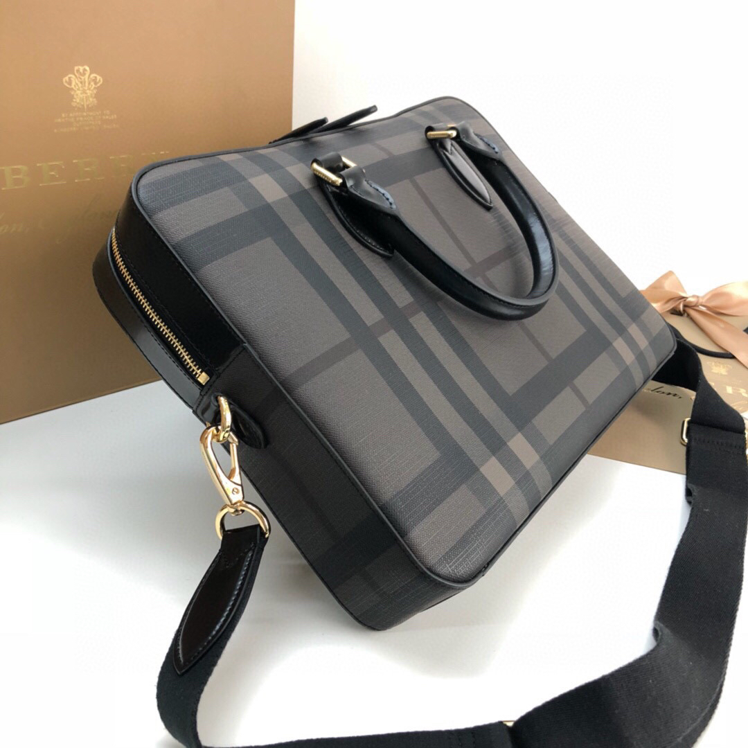 B家官网新款London 格纹公文包,搭配头层牛皮边饰,装饰马术骑士图案。可缔造手提造型,或使用可拆式背带便于肩背。肩带可调节,上身效果超赞!尺寸:37 x 9 x 27cm!