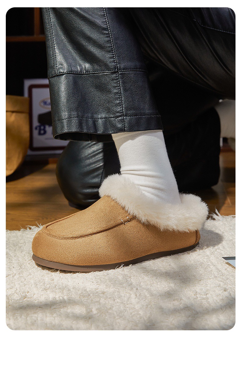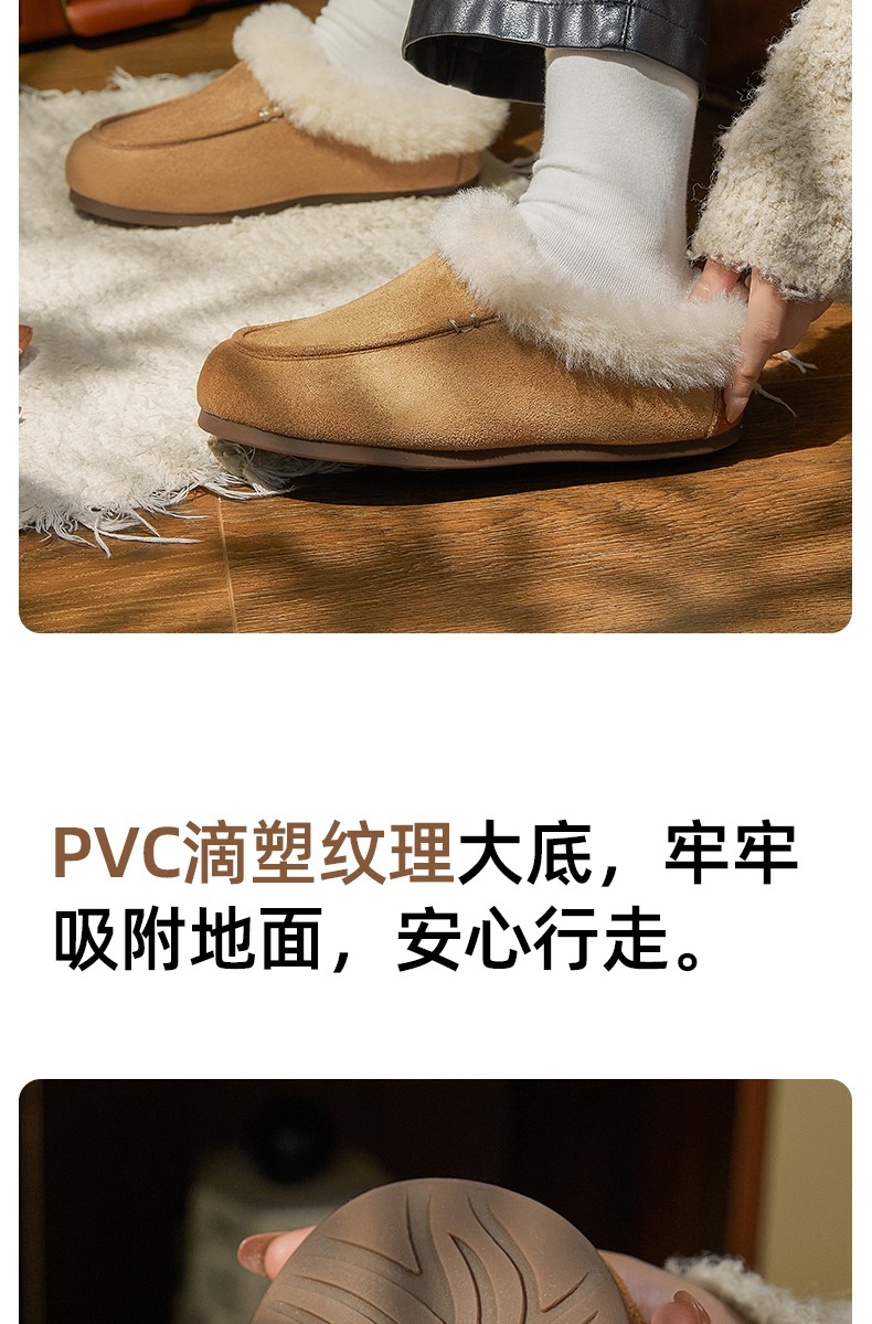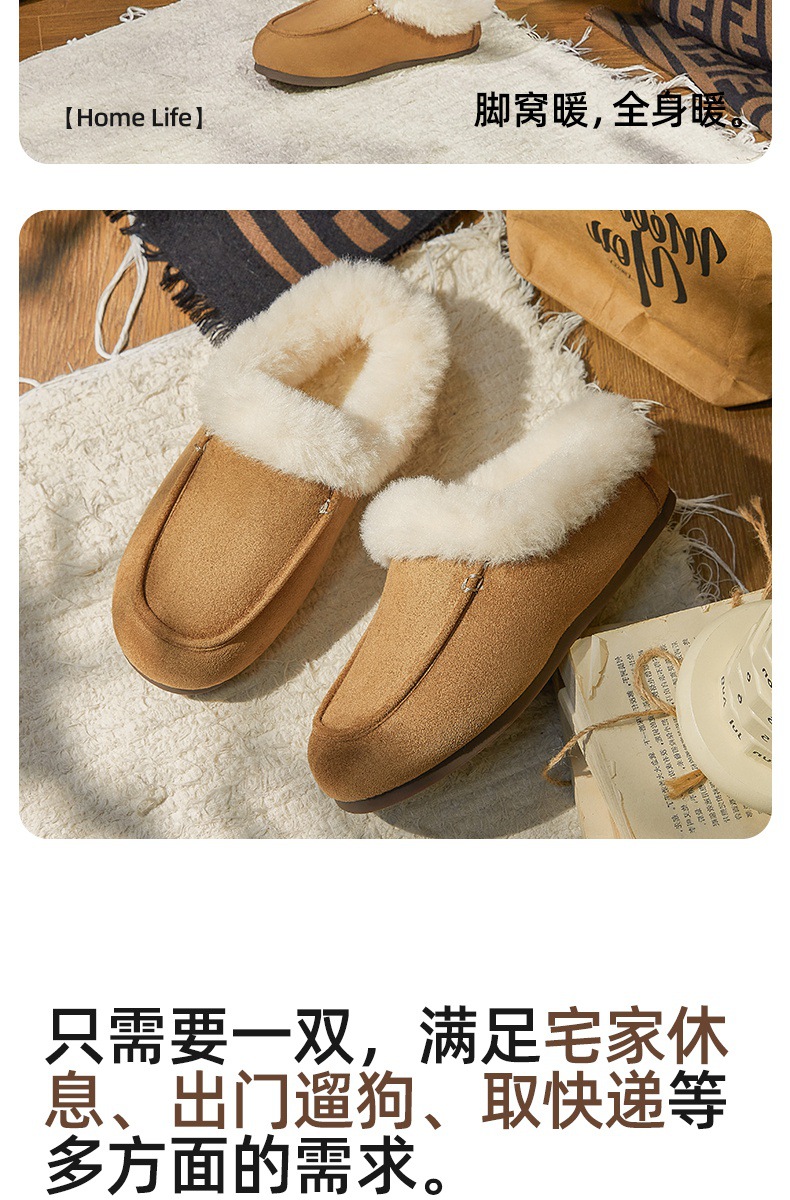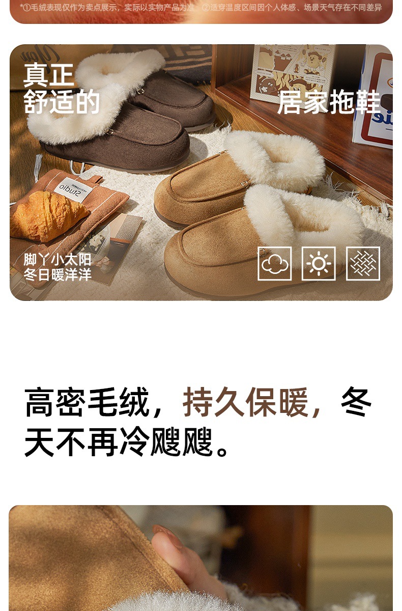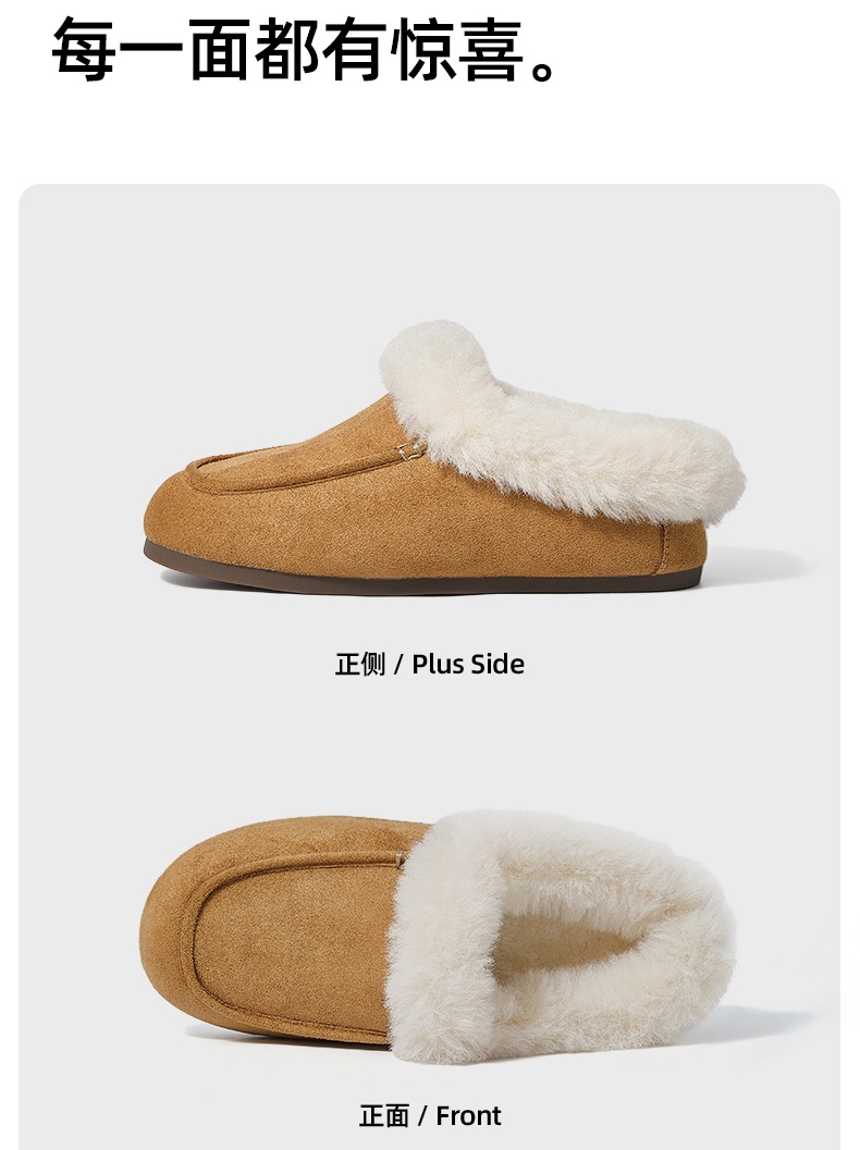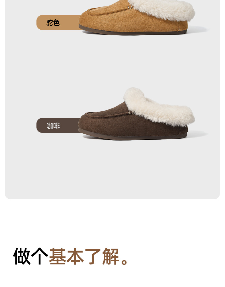 女士时尚简约纯色保暖半包棉拖鞋女保暖舒适毛绒外穿【WG25137】