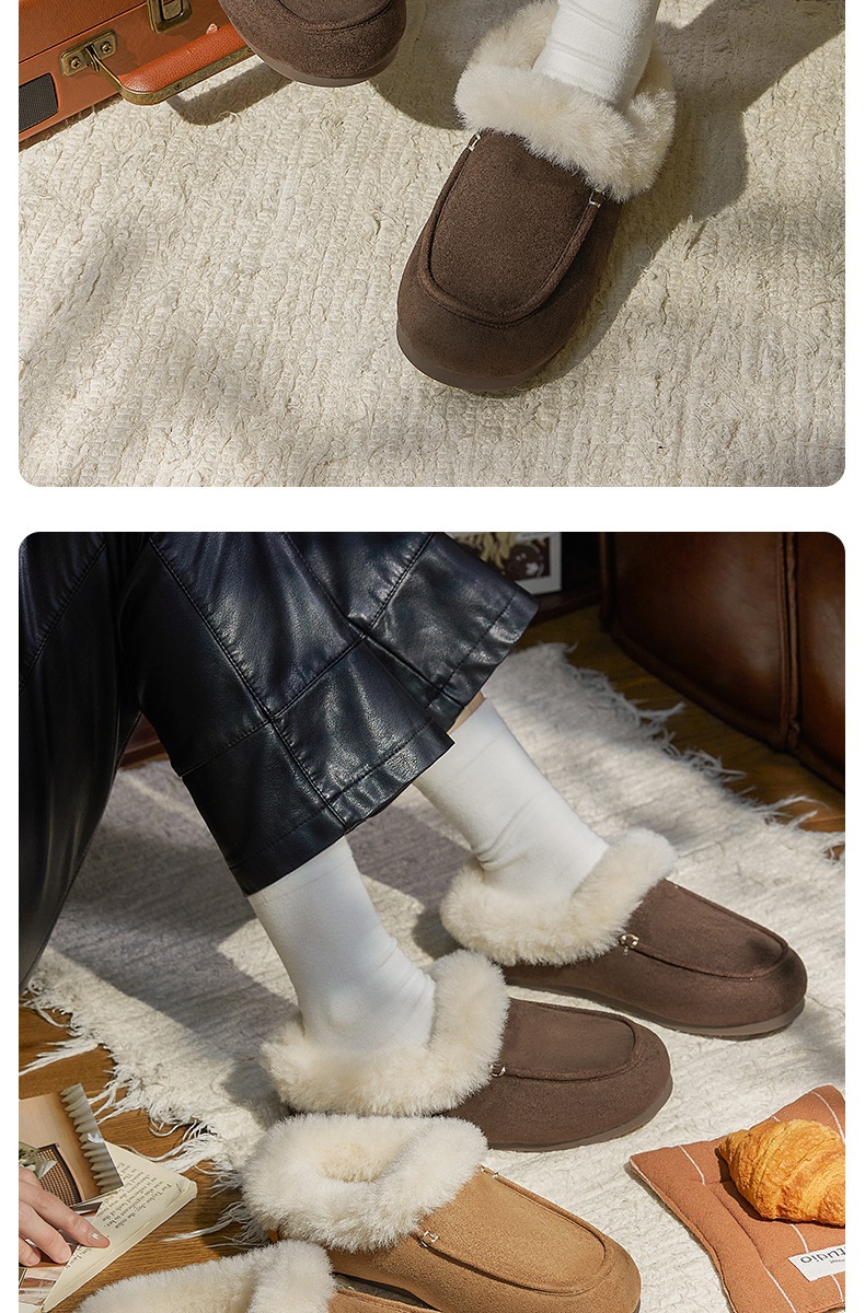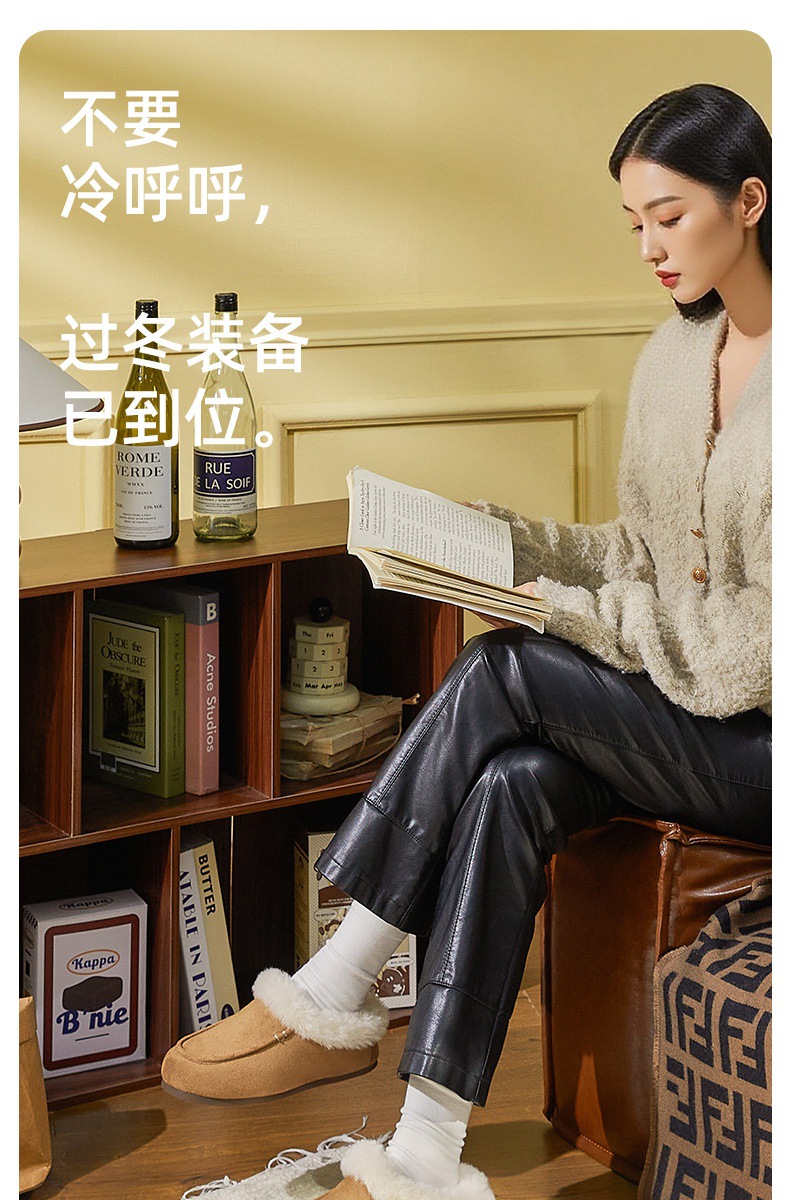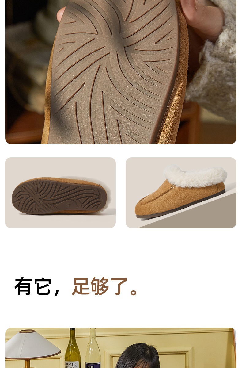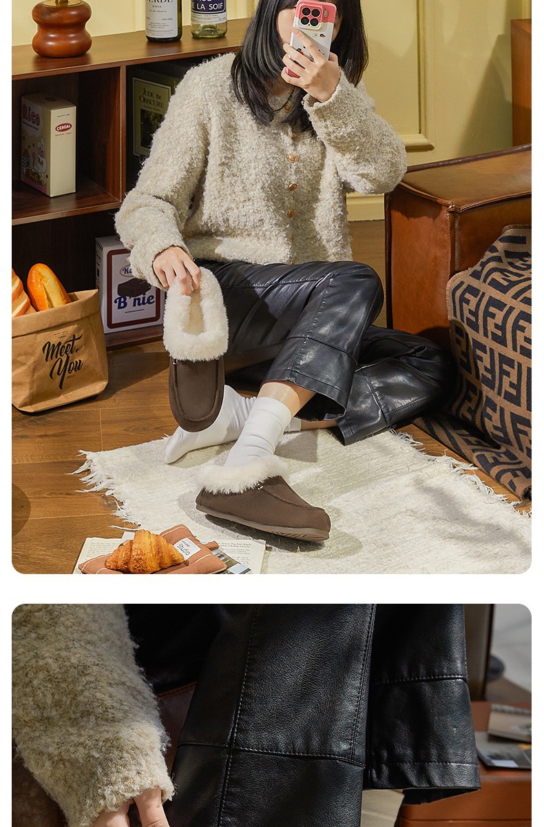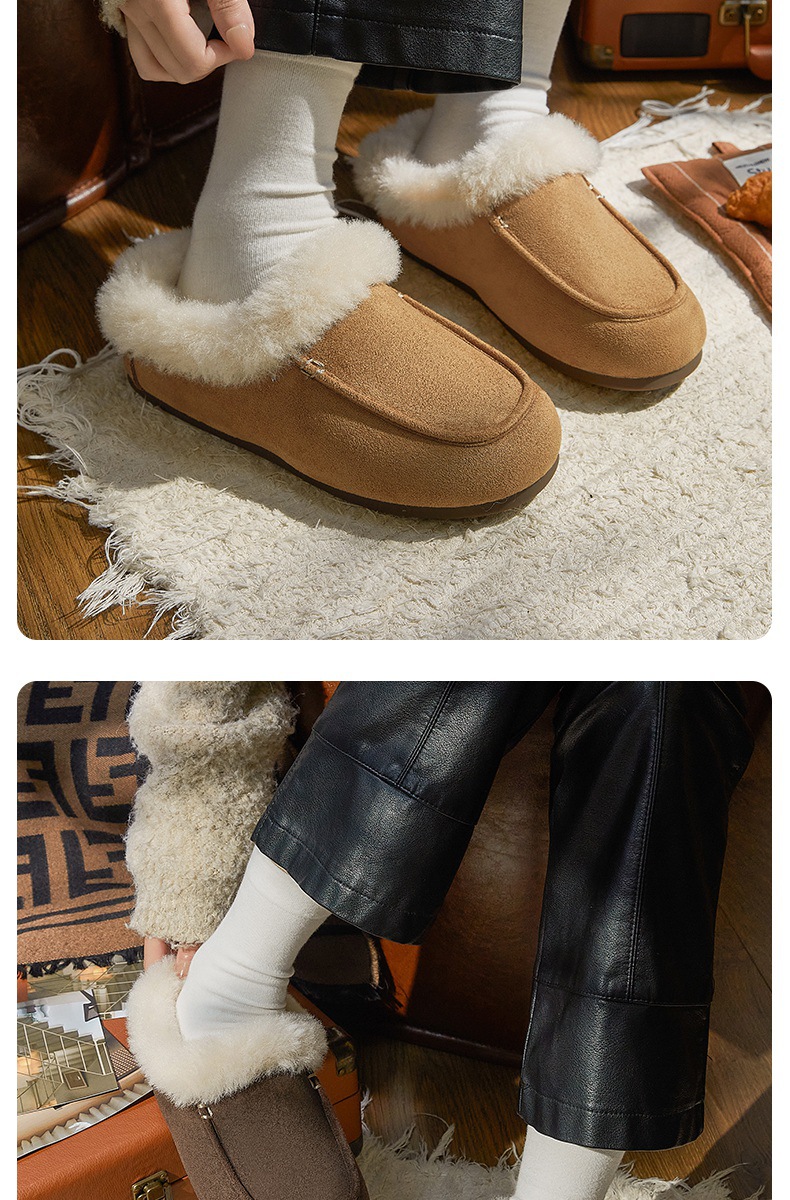 女士时尚简约纯色保暖半包棉拖鞋女保暖舒适毛绒外穿【WG25137】