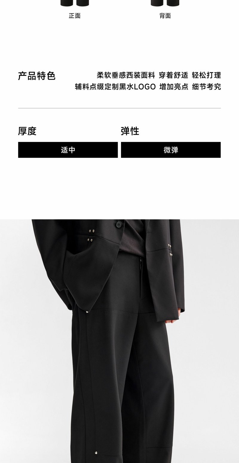 CHINISM赤尘 黑色垂感直筒西裤男秋季新款休闲长裤