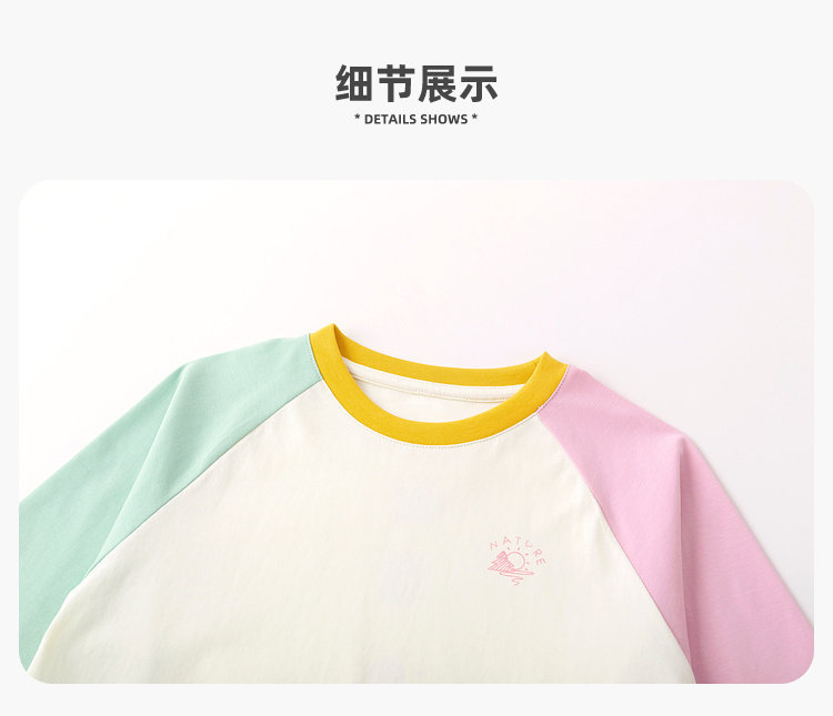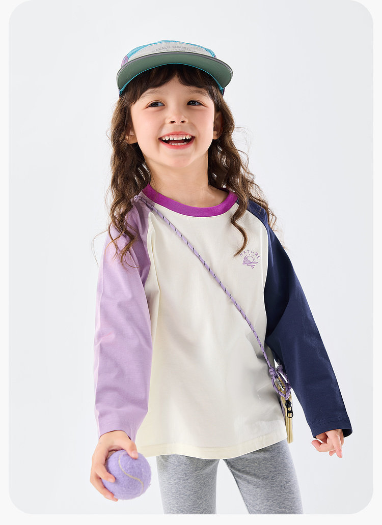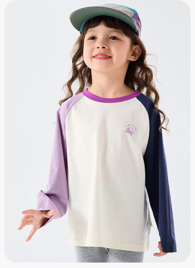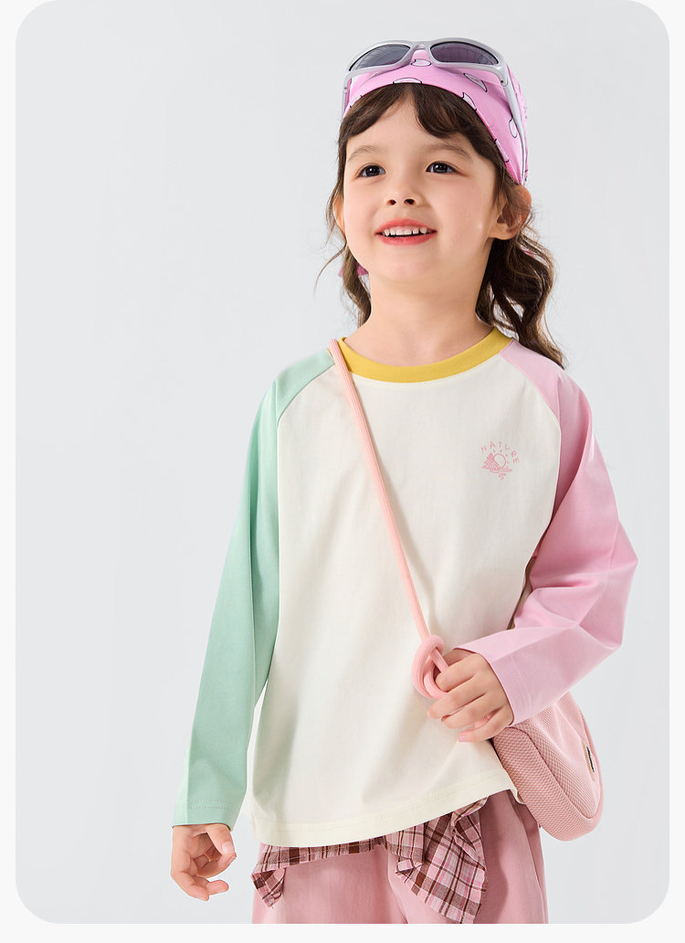 嘟嘟家女童T恤撞色宝宝衣服卡通儿童上衣凉感春秋款插肩袖t恤童装C6ATX143