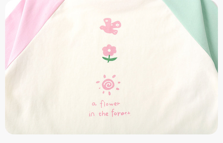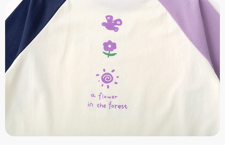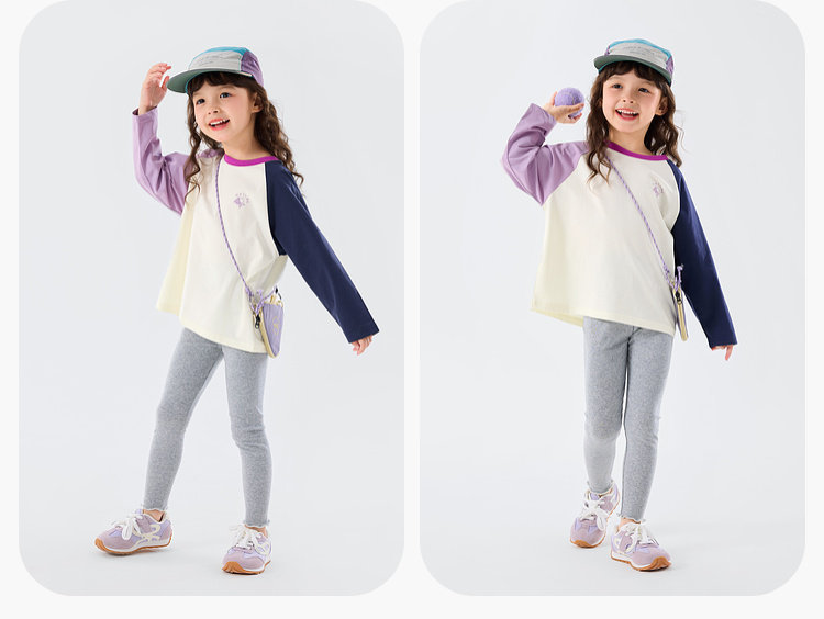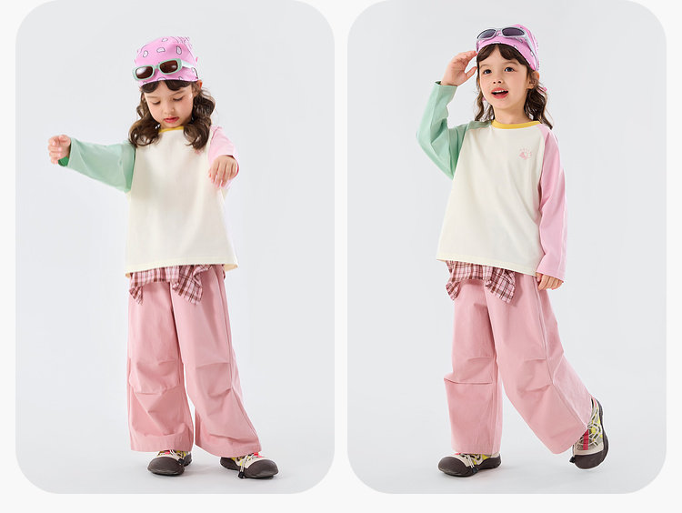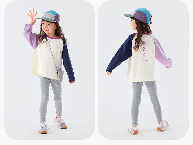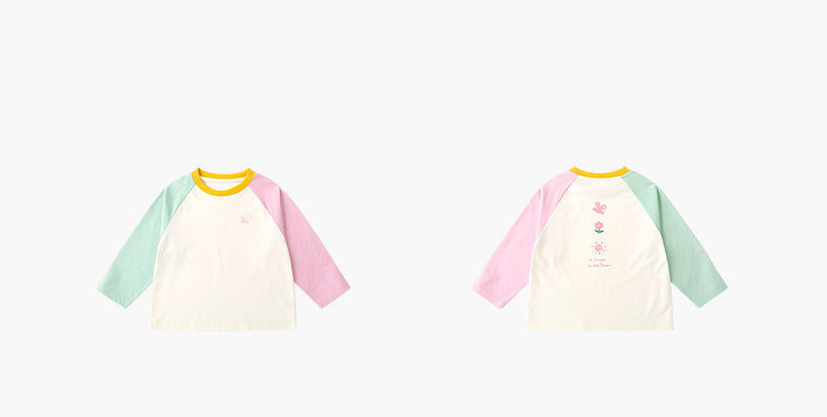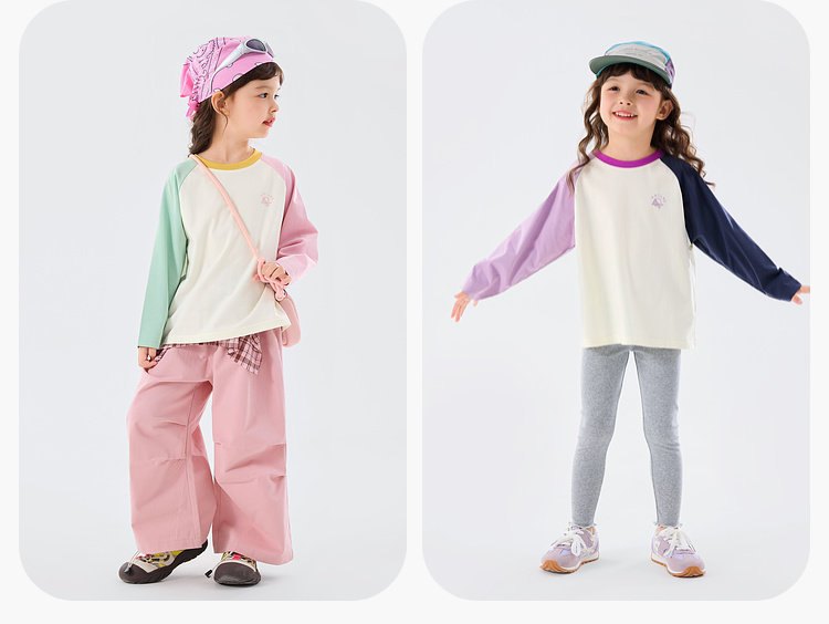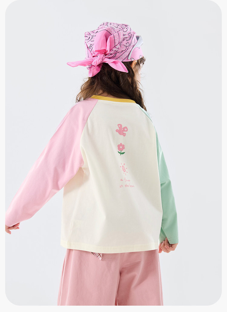 嘟嘟家女童T恤撞色宝宝衣服卡通儿童上衣凉感春秋款插肩袖t恤童装C6ATX143
