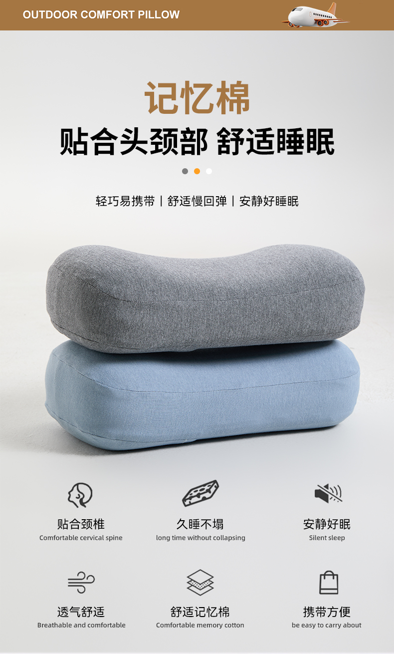 自然醒便携记忆棉旅行枕露营午睡旅行出差便携枕头旅游枕头靠枕护颈枕芯XK
