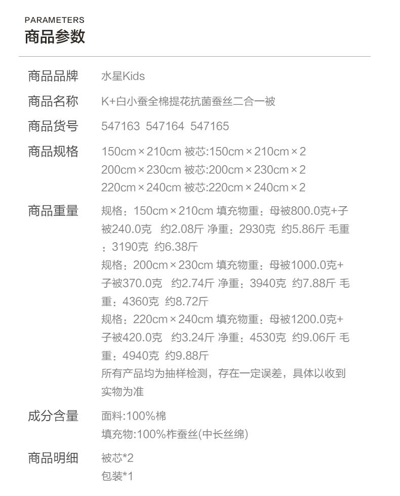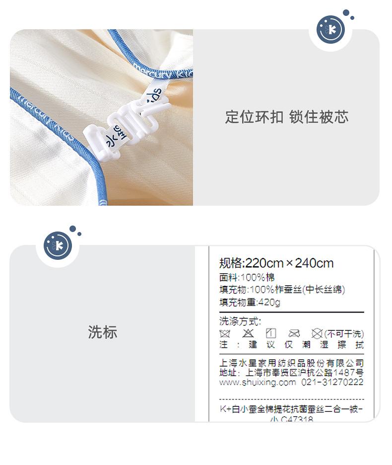 水星家纺全棉提花抗菌抑菌蚕丝二合一被柔软亲肤冬被子母被严选