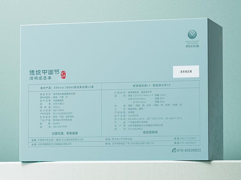 【自营】茅台 2024年传统中国节·清明感恩季套盒 53%vol 200ml贵州茅台酒x2 盒涌泉壶x1 滴水杯x2 定制礼袋x1个