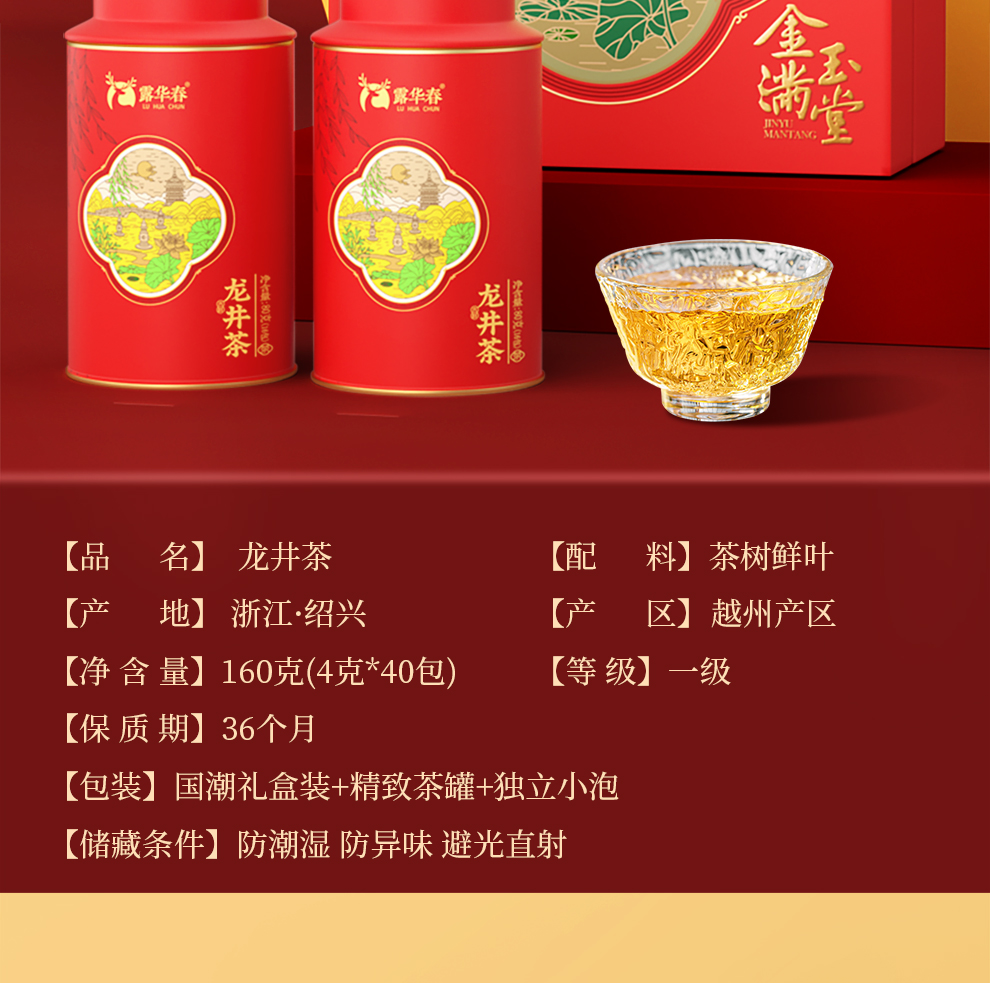 雀牌·露华春-金玉满堂.龙井茶礼盒160g