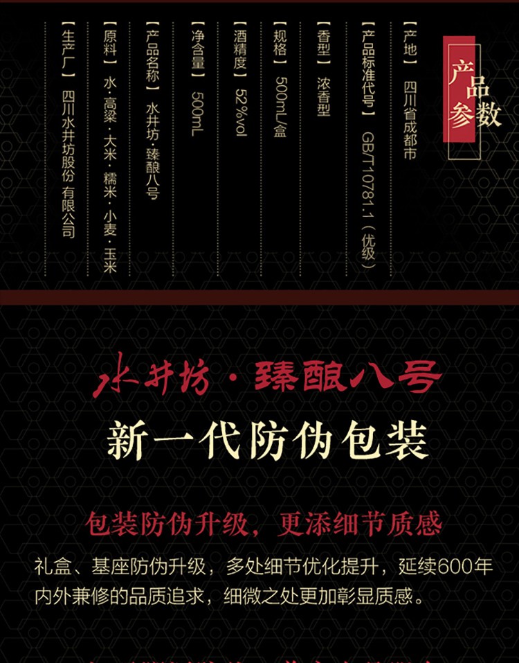水井坊臻酿八号52度500ml*1【直选好酒-包邮】